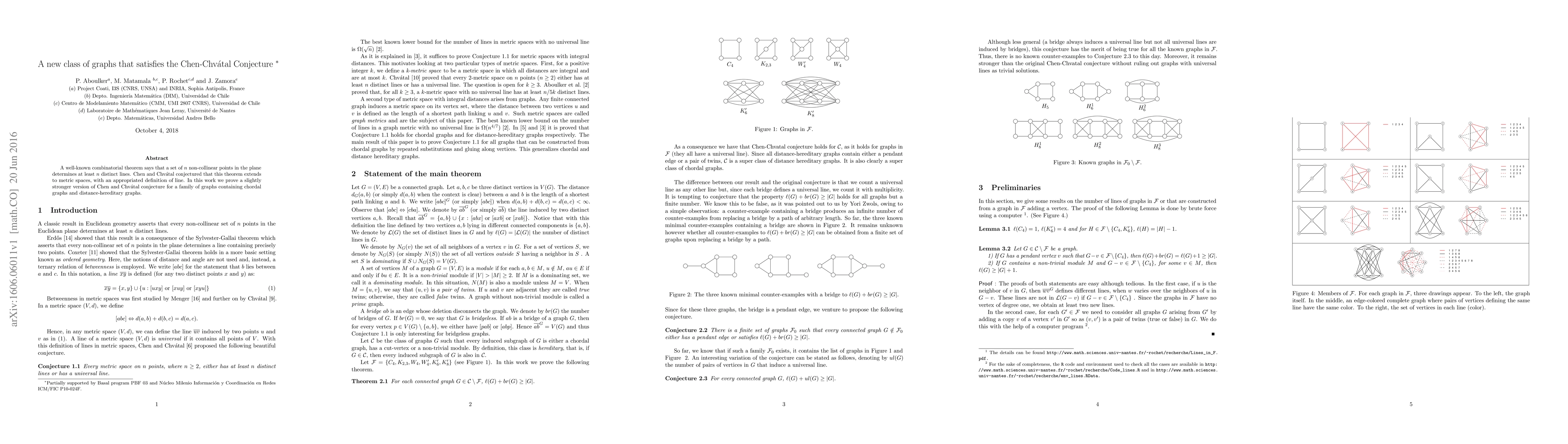 A well-known combinatorial theorem says that a set of n non-collinear points in the plane determines at least n distinct lines. Chen and Chv\'atal conjectured that this theorem extends to metric spaces, with an appropriated definition of line. In this work we prove a slightly stronger version of Chen and Chv\'atal conjecture for a family of graphs containing chordal graphs and distance-hereditary graphs.