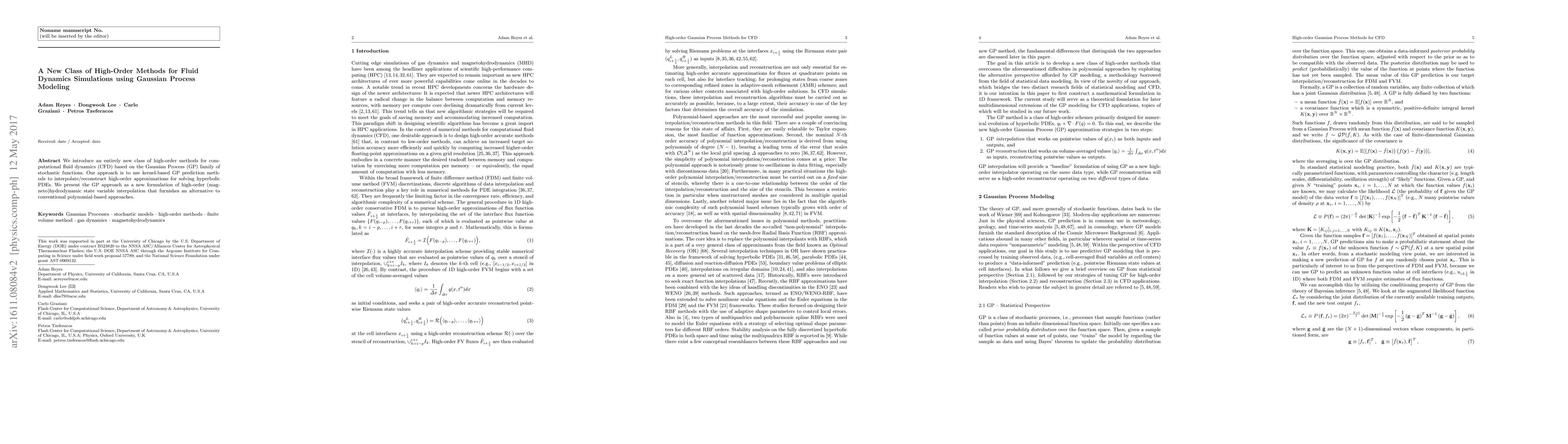 Researchers developed a new method for fluid dynamics simulations using Gaussian Process modeling to create high-order approximations for solving complex equations. This approach offers an alternative to traditional polynomial-based methods, providing a more efficient solution for simulating fluid dynamics.