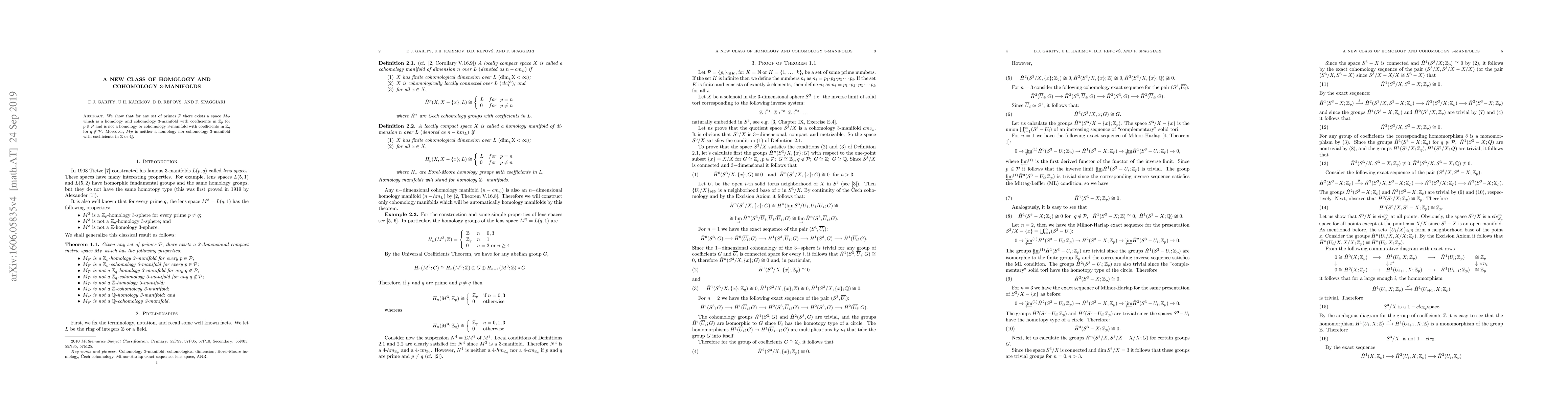 This paper introduces a new class of 3-manifolds, $M_{\mathcal{P}}$, that exhibit homology and cohomology properties specific to a given set of primes $\mathcal{P}$, while failing to meet these criteria for any other primes or integer coefficients. These manifolds highlight unique algebraic topological characteristics.