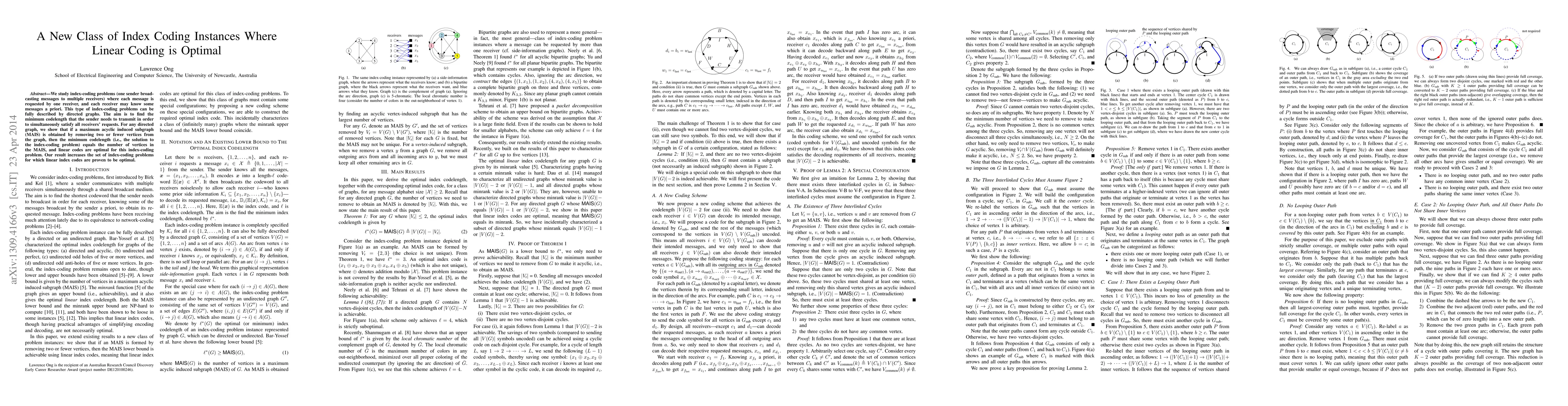 This paper investigates index-coding problems where linear coding is optimal. It demonstrates that for directed graphs where removing two or fewer vertices results in a maximum acyclic induced subgraph, the minimum codelength equals the size of this subgraph, and linear codes are the optimal solution.