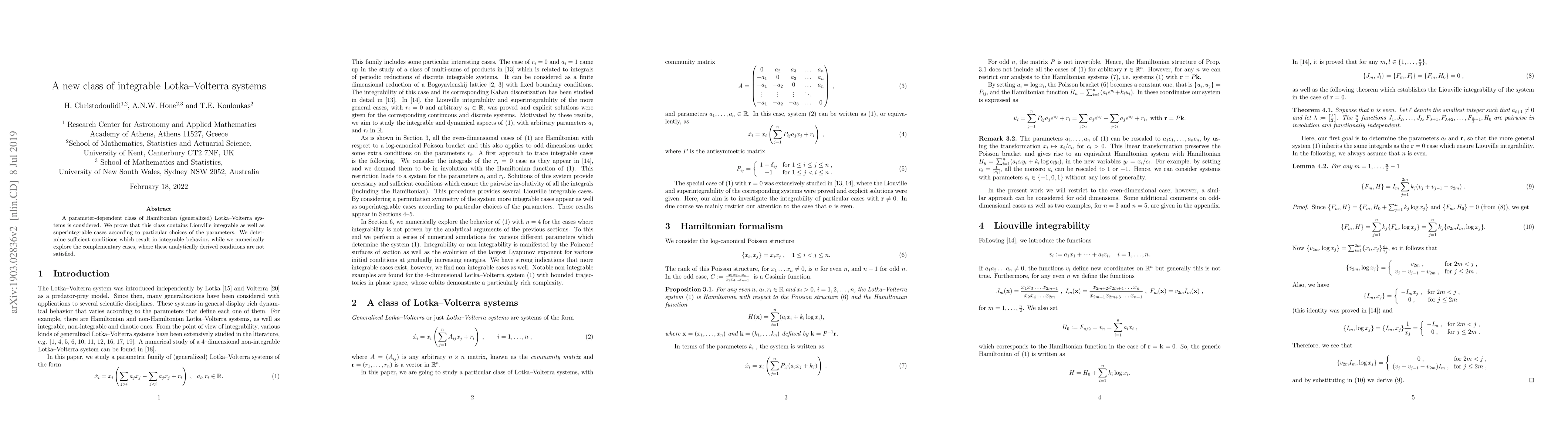 This paper introduces a new class of Hamiltonian Lotka-Volterra systems, proving that it encompasses both Liouville integrable and superintegrable cases depending on parameter choices. It also determines conditions for integrability and numerically examines non-integrable scenarios.
