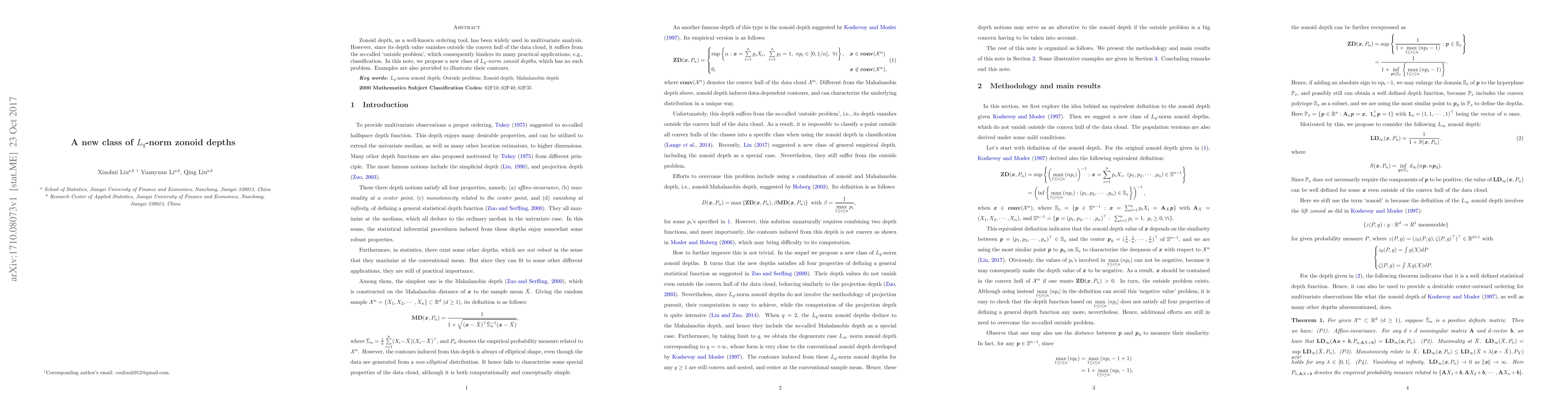 Researchers propose a new class of $L_q$-norm zonoid depths that can measure depth without vanishing outside the data cloud, addressing the 'outside problem', for practical applications like classification.