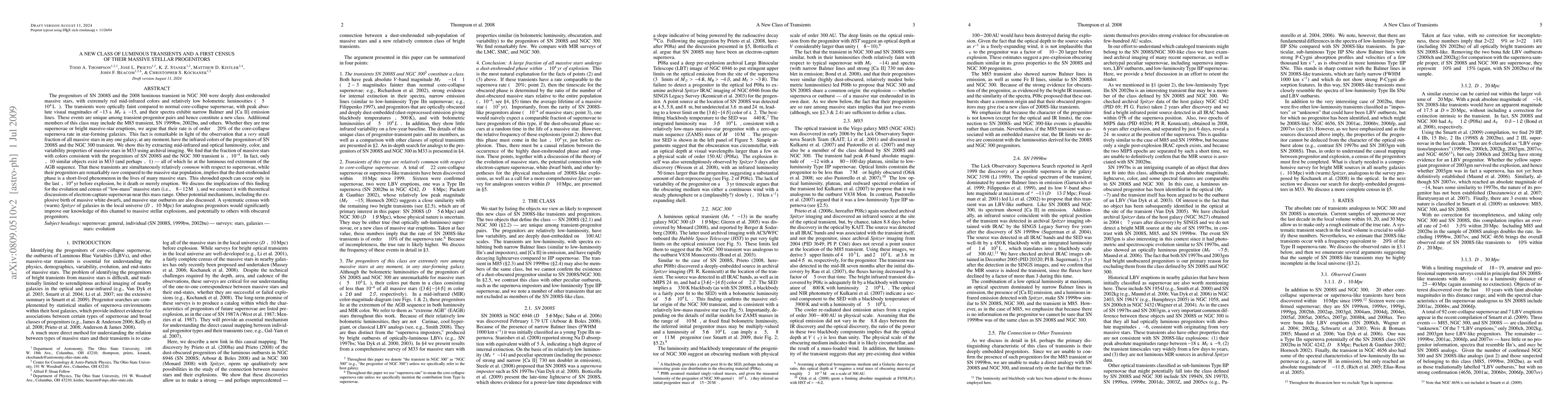 The progenitors of SN 2008S and the 2008 transient in NGC300 were dust-enshrouded, with extremely red mid-infrared (MIR) colors and relatively low luminosities. The transients were optically faint (-13 < M_V < -15) compared to normal core-collapse supernovae (SNe), and their spectra exhibited narrow emission lines. These events are unique among transient-progenitor pairs and hence constitute a new class. Whether they are true SNe or bright massive-star eruptions, we argue that their rate is ~20% of the SN rate. This fact is remarkable in light of the observation that a very small fraction of all massive stars have the MIR colors of the SN 2008S and NGC300 progenitors, as we show using MIR and optical luminosity, color, and variability properties of massive stars in M33. We find that the fraction of massive stars with colors consistent with these progenitors is 1/10000. In fact, only < 10 similar objects exist in M33 - all of which lie at the luminous red extremum of the AGB sequence. That these transients are relatively common with respect to SNe, while their progenitors are rare compared to the massive star population, implies that the dust-enshrouded phase is a short-lived phase in the lives of many massive stars. This shrouded epoch can occur only in the last ~10^4 yr before explosion, be it death or merely eruption. We discuss the implications of this finding for the evolution and census of ``low-mass'' massive stars (8-12 Msun), and we connect it with theoretical discussions of electron-capture SNe and the explosive birth of white dwarfs. A systematic census with (warm) Spitzer of galaxies in the local universe for analogous progenitors would significantly improve our knowledge of this channel to massive stellar explosions, and potentially to others with obscured progenitors. (Abridged)