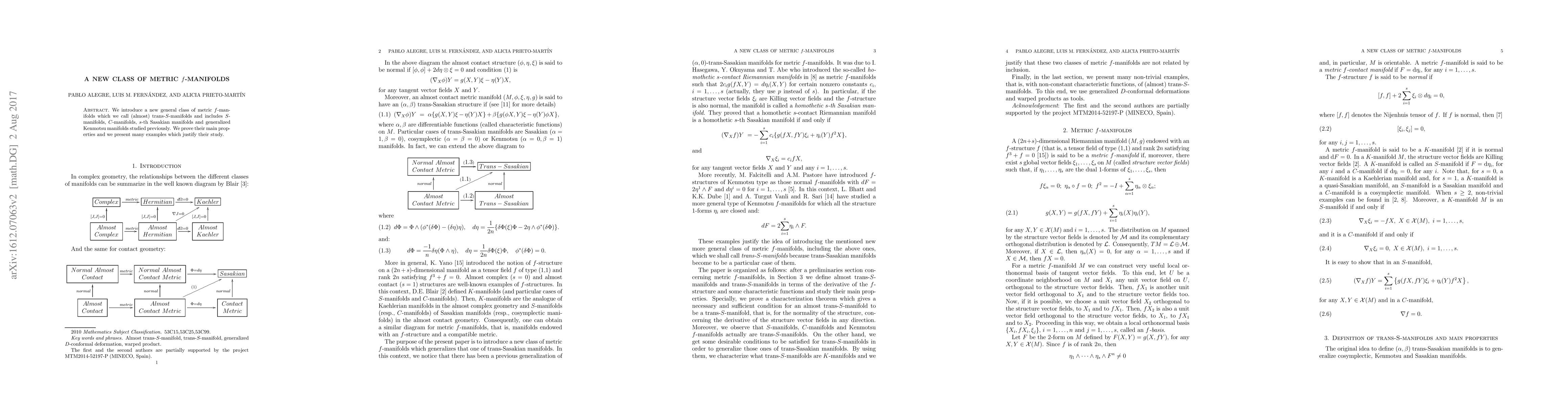 Researchers introduce a new class of metric f-manifolds called (nearly) trans-S manifolds, which includes various types of known manifolds, and provide proof of their properties and examples that justify their study.