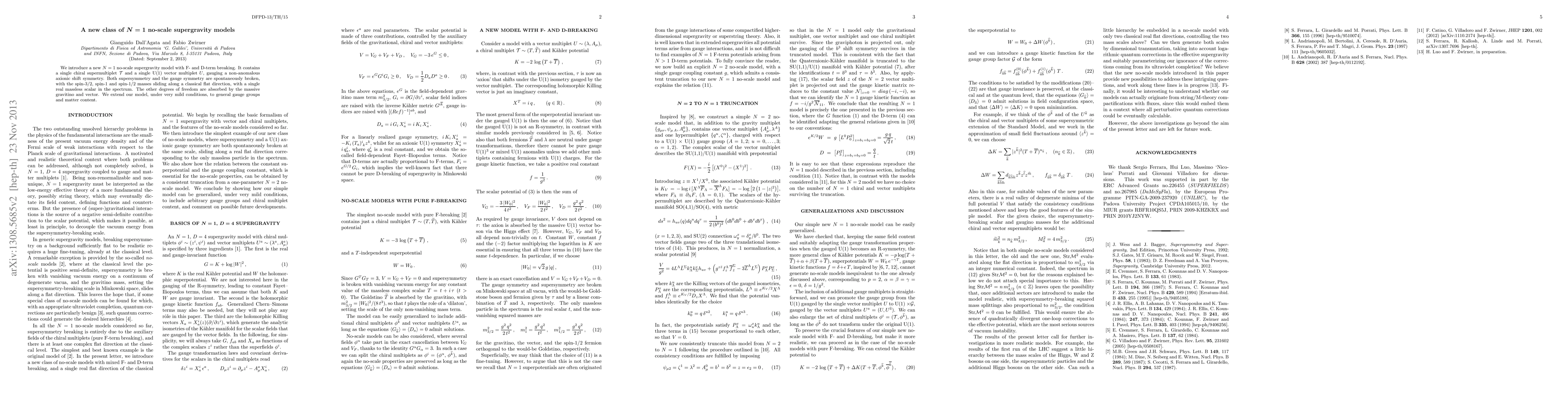 Researchers introduce a new N=1 no-scale supergravity model with breaking, featuring a single chiral multiplet and gauge vector, which spontaneously breaks supersymmetry and gauge symmetry, resulting in a spectrum of masses that slide along a classical flat direction.