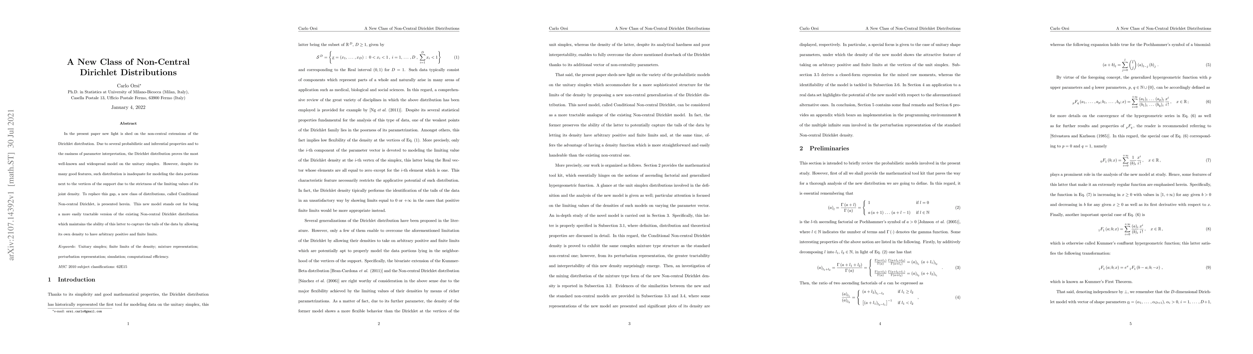 In the present paper new light is shed on the non-central extensions of the Dirichlet distribution. Due to several probabilistic and inferential properties and to the easiness of parameter interpretation, the Dirichlet distribution proves the most well-known and widespread model on the unitary simplex. However, despite its many good features, such distribution is inadequate for modeling the data portions next to the vertices of the support due to the strictness of the limiting values of its joint density. To replace this gap, a new class of distributions, called Conditional Non-central Dirichlet, is presented herein. This new model stands out for being a more easily tractable version of the existing Non-central Dirichlet distribution which maintains the ability of this latter to capture the tails of the data by allowing its own density to have arbitrary positive and finite limits.