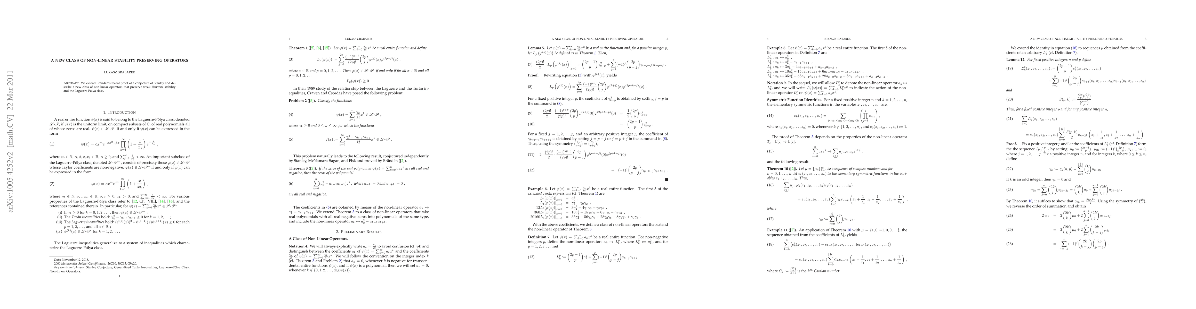 Summary: This paper extends Br\"and\'en's proof of Stanley's conjecture to introduce a novel class of non-linear operators that maintain weak Hurwitz stability and the Laguerre-P\'olya class properties.