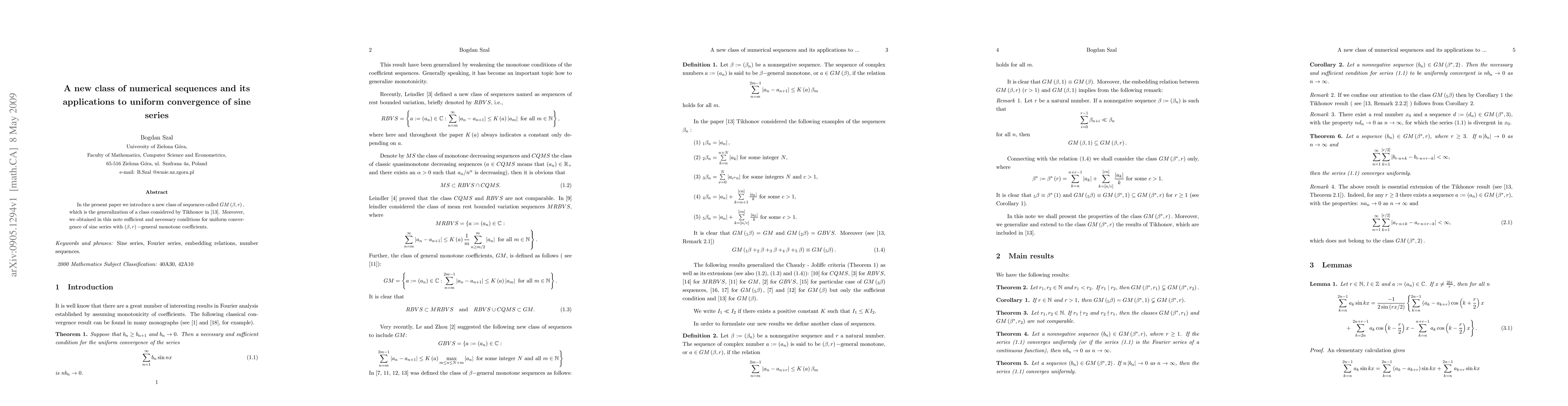Summary: This paper introduces a new class of sequences, GM(b,r), generalizing a previous class by Tikhonov, and provides sufficient and necessary conditions for the uniform convergence of sine series with (b,r)-general monotone coefficients.