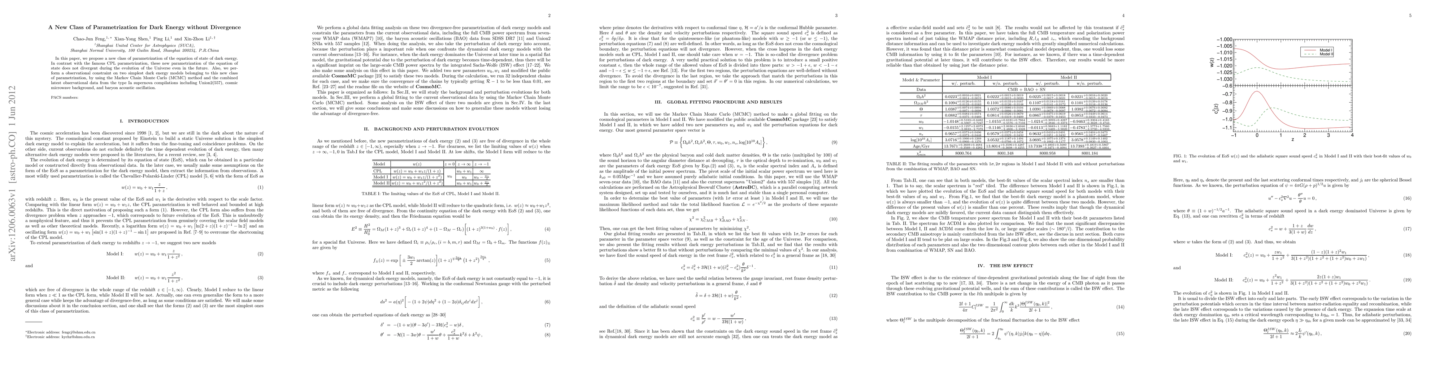This paper introduces a novel parametrization for dark energy's equation of state that avoids divergence during cosmic evolution, contrasting with the CPL parametrization. It also constrains two simple models from this new class using MCMC and combined observational data from supernovae, CMB, and baryon acoustic oscillations.
