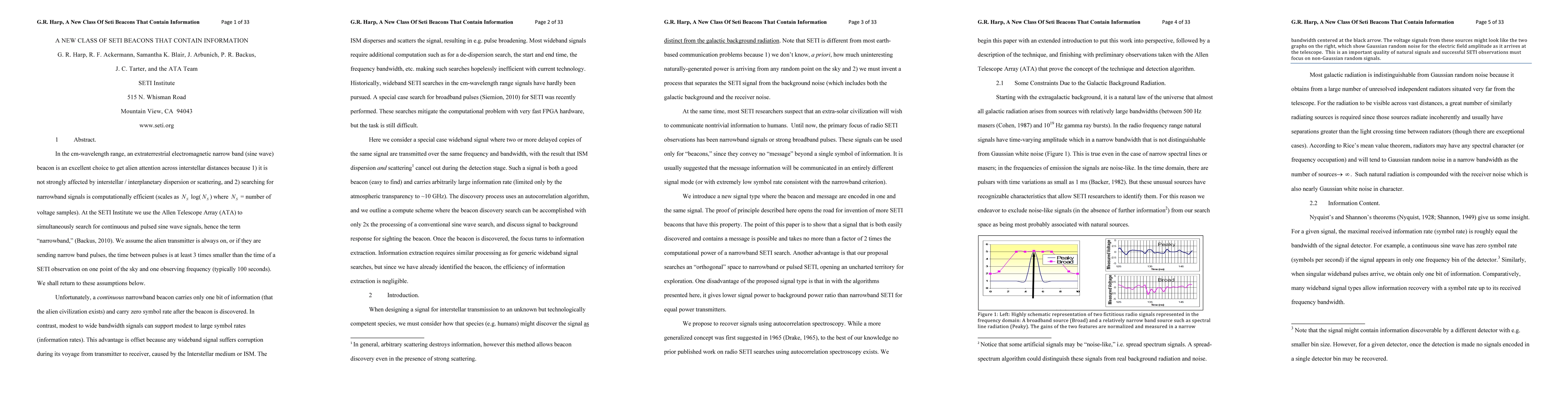 In the cm-wavelength range, an extraterrestrial electromagnetic narrow band (sine wave) beacon is an excellent choice to get alien attention across interstellar distances because 1) it is not strongly affected by interstellar / interplanetary dispersion or scattering, and 2) searching for narrowband signals is computationally efficient (scales as Ns log(Ns) where Ns = number of voltage samples). Here we consider a special case wideband signal where two or more delayed copies of the same signal are transmitted over the same frequency and bandwidth, with the result that ISM dispersion and scattering cancel out during the detection stage. Such a signal is both a good beacon (easy to find) and carries arbitrarily large information rate (limited only by the atmospheric transparency to about 10 GHz). The discovery process uses an autocorrelation algorithm, and we outline a compute scheme where the beacon discovery search can be accomplished with only 2x the processing of a conventional sine wave search, and discuss signal to background response for sighting the beacon. Once the beacon is discovered, the focus turns to information extraction. Information extraction requires similar processing as for generic wideband signal searches, but since we have already identified the beacon, the efficiency of information extraction is negligible.
