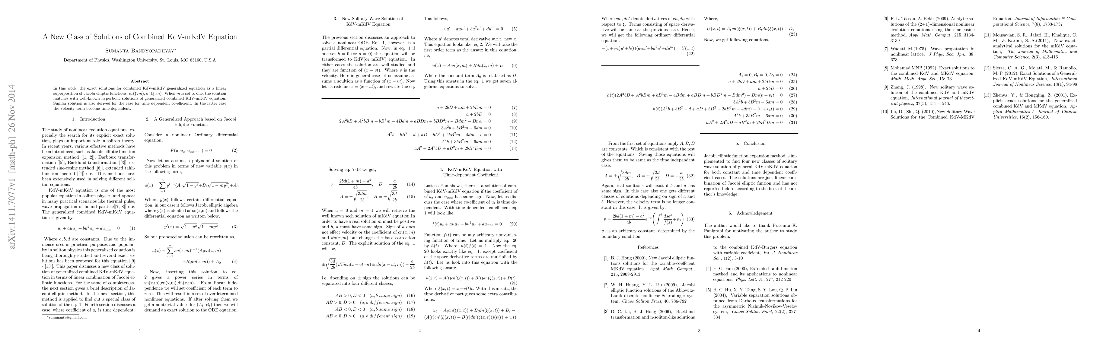 In this work, the exact solutions for combined KdV-mKdV generalized equation as a linear superposition of Jacobi elliptic functions, $c_n(\xi,m)$, $d_n(\xi,m)$. When $m$ is set to one, the solution matches with well-known hyperbolic solutions of generalized combined KdV-mKdV equation. Similar solution is also derived for the case for time dependent co-efficient. In the latter case the velocity term become time dependent.