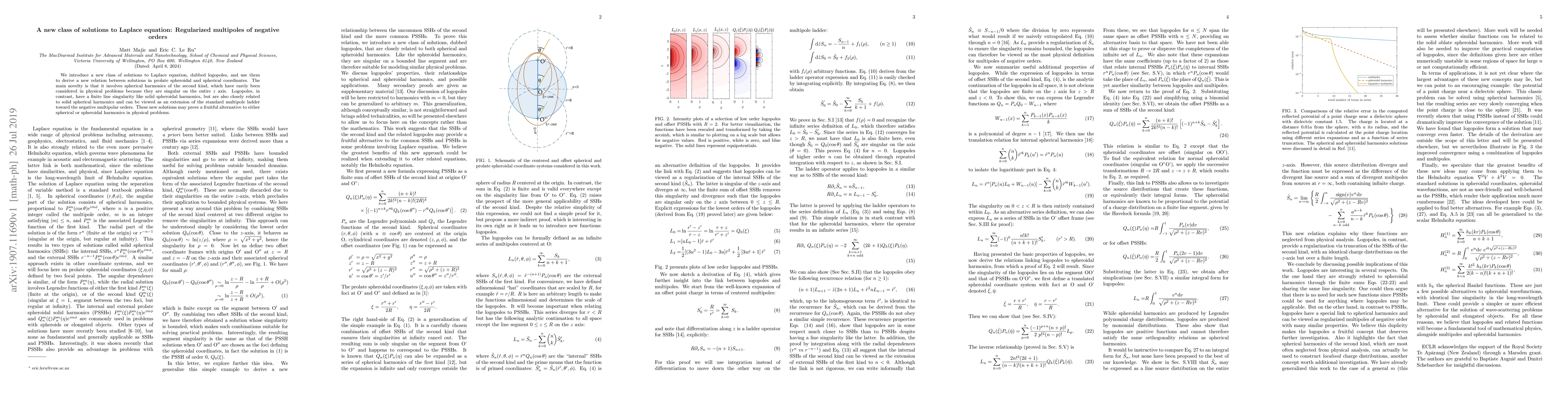 We introduce a new class of solutions to Laplace equation, dubbed logopoles, and use them to derive a new relation between solutions in prolate spheroidal and spherical coordinates. The main novelty is that it involves spherical harmonics of the second kind, which have rarely been considered in physical problems because they are singular on the entire z axis. Logopoles, in contrast, have a finite line singularity like solid spheroidal harmonics, but are also closely related to solid spherical harmonics and can be viewed as an extension of the standard multipole ladder toward the negative multipolar orders. These new solutions may prove a fruitful alternative to either spherical or spheroidal harmonics in physical problems.