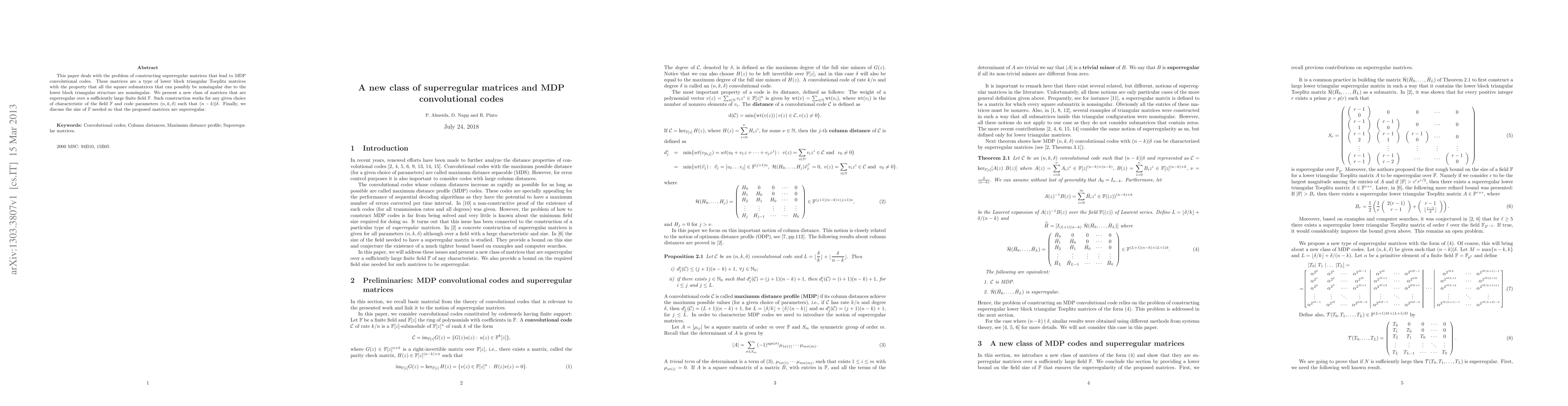 Researchers introduce a new class of superregular matrices that enable the construction of MDP convolutional codes with specified parameters. The proposed matrices can handle various field sizes and code configurations.