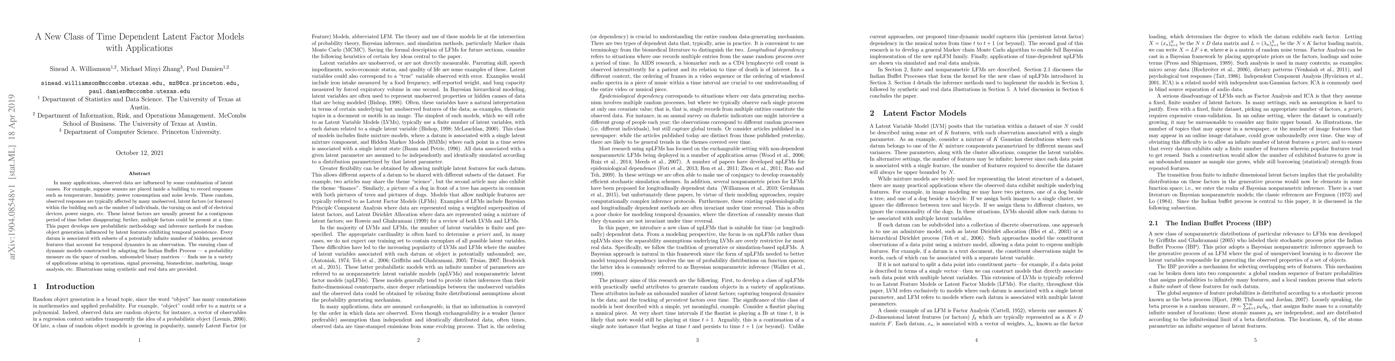 A new class of time-dependent latent factor models is developed to capture temporal dynamics in observed data influenced by unobserved latent factors. These models have applications in various fields such as operations, signal processing, and biomedicine.