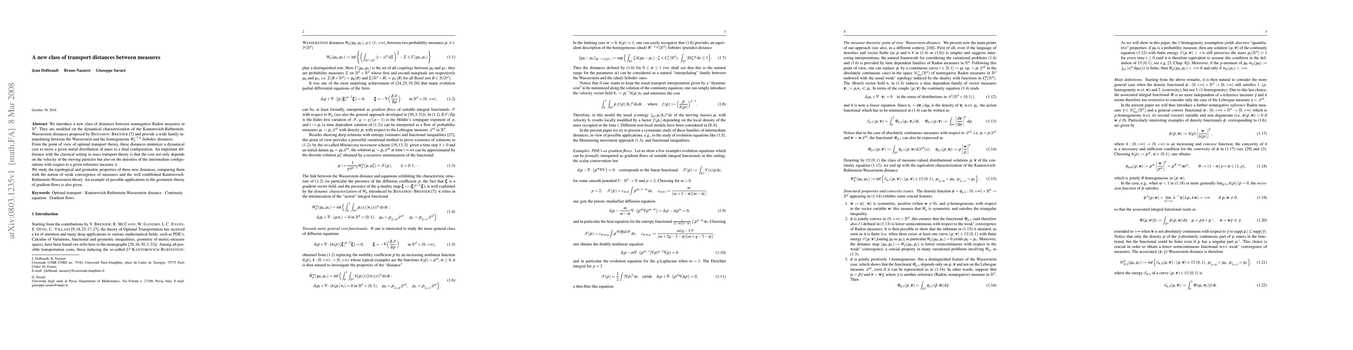 We introduce a new class of distances between nonnegative Radon measures in Euclidean spaces. They are modeled on the dynamical characterization of the Kantorovich-Rubinstein-Wasserstein distances proposed by Benamou-Brenier and provide a wide family interpolating between the Wasserstein and the homogeneous (dual) Sobolev distances. From the point of view of optimal transport theory, these distances minimize a dynamical cost to move a given initial distribution of mass to a final configuration. An important difference with the classical setting in mass transport theory is that the cost not only depends on the velocity of the moving particles but also on the densities of the intermediate configurations with respect to a given reference measure. We study the topological and geometric properties of these new distances, comparing them with the notion of weak convergence of measures and the well established Kantorovich-Rubinstein-Wasserstein theory. An example of possible applications to the geometric theory of gradient flows is also given.