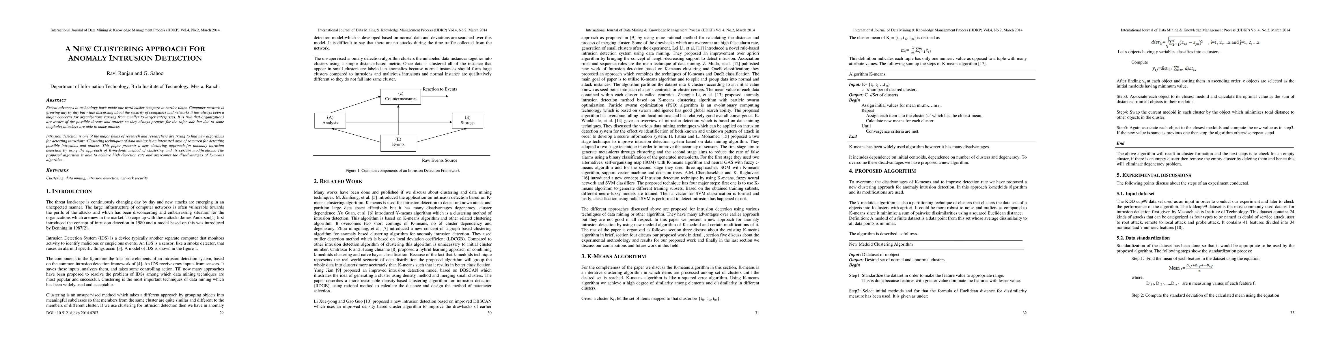 This paper introduces a novel clustering method based on K-medoids for anomaly intrusion detection, aiming to achieve a higher detection rate and overcome the limitations of the K-means algorithm. The modified approach promises improved accuracy in identifying potential security threats in computer networks.