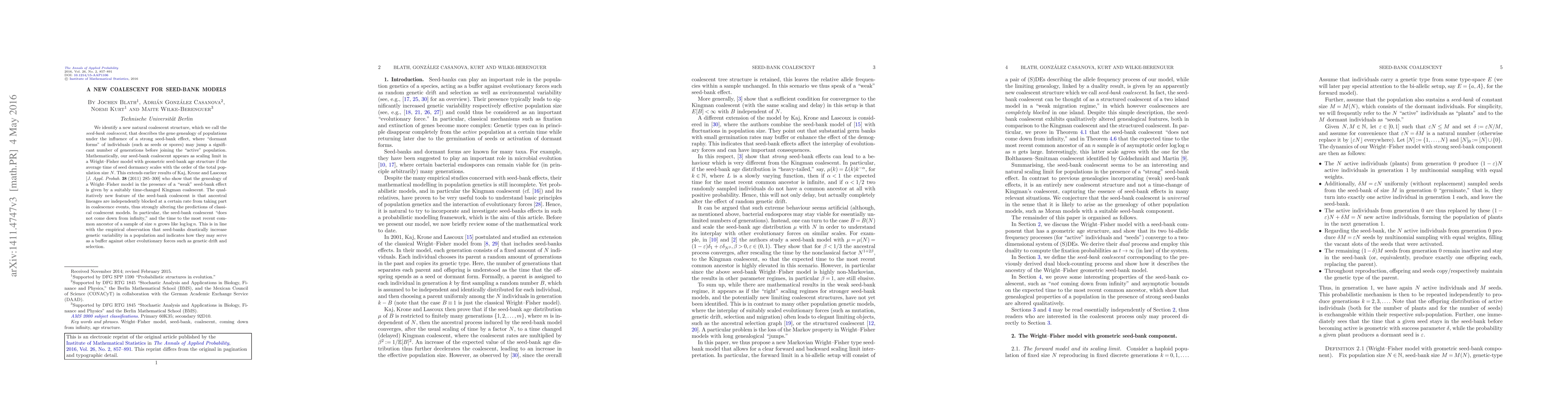 The paper introduces a new seed-bank coalescent model that describes gene genealogies in populations with strong seed-bank effects, where dormant forms can significantly delay joining the active population. This model diverges from classical coalescent predictions by blocking ancestral lineages from coalescence, leading to a logarithmic growth in the time to the most recent common ancestor.
