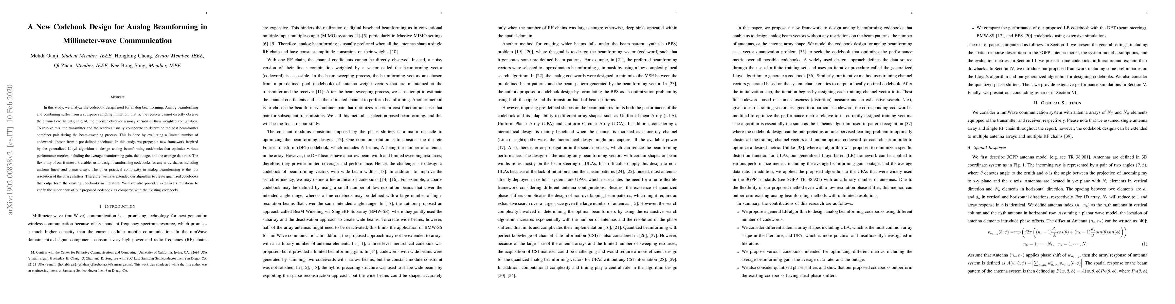 The paper presents a novel codebook design framework for analog beamforming that optimizes performance metrics using the generalized Lloyd algorithm, extending to various array shapes and quantized phase shifters.
