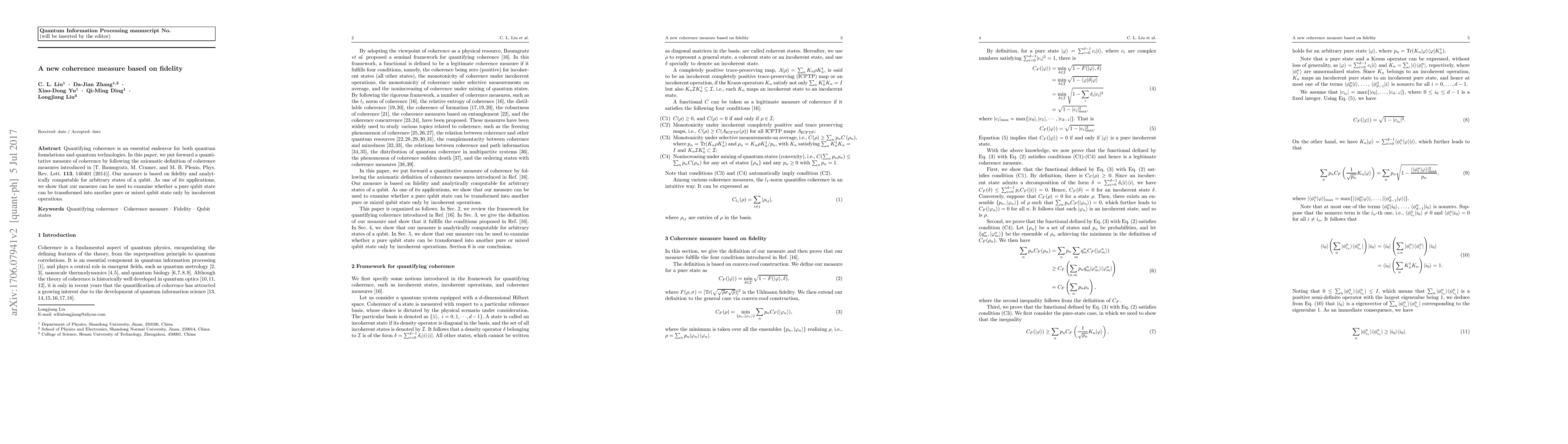 Quantifying coherence is an essential endeavor for both quantum foundations and quantum technologies. In this paper, we put forward a quantitative measure of coherence by following the axiomatic definition of coherence measures introduced in [T. Baumgratz, M. Cramer, and M. B. Plenio, Phys. Rev. Lett. 113, 140401 (2014)]. Our measure is based on fidelity and analytically computable for arbitrary states of a qubit. As one of its applications, we show that our measure can be used to examine whether a pure qubit state can be transformed into another pure or mixed qubit state only by incoherent operations.