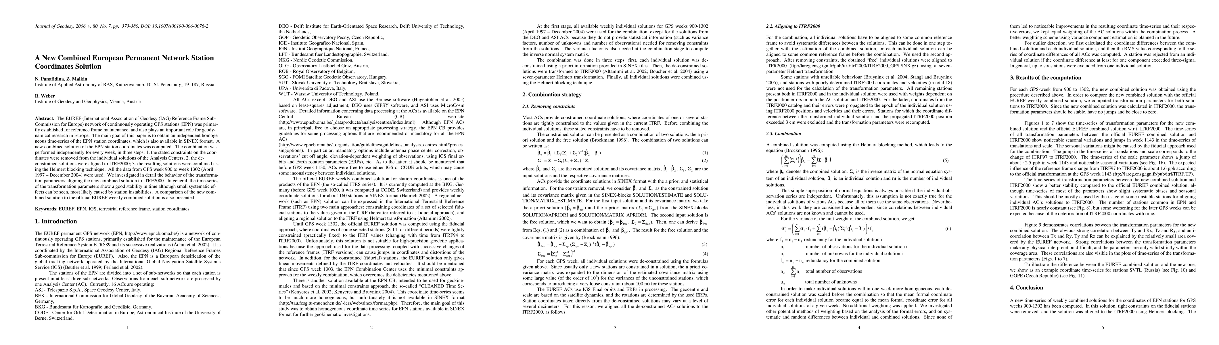 Researchers created a new combined solution for European Permanent Network Station Coordinates using GPS data from 1997 to 2004, providing an independent homogeneous time-series in SINEX format.