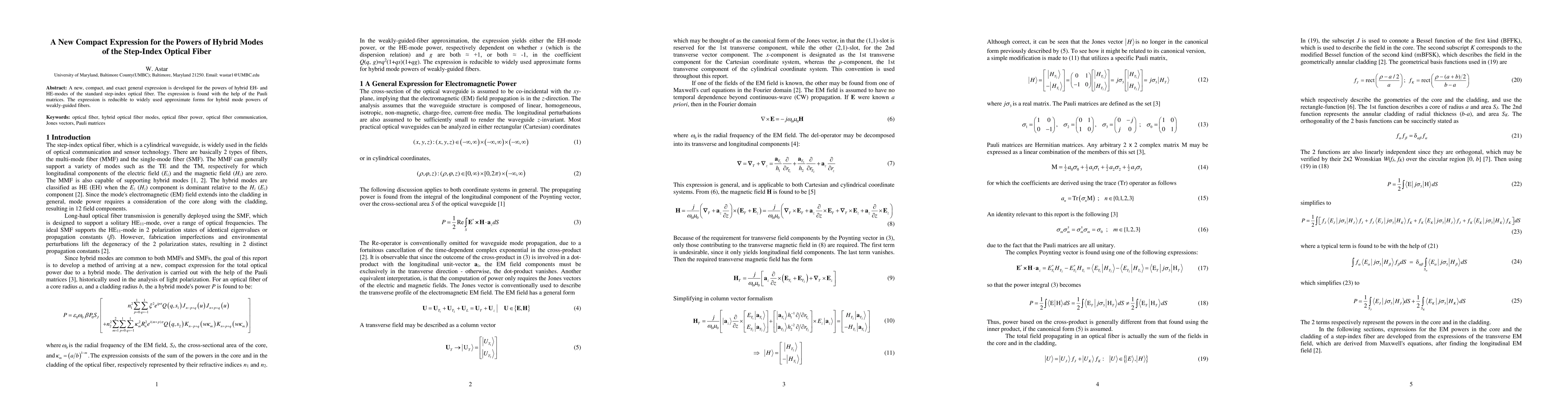 A new, compact, and exact general expression is developed for the powers of hybrid EH- and HE-modes of the standard step-index optical fiber. The expression is found with the help of the Pauli matrices. The expression is reducible to widely used approximate forms for hybrid mode powers of weakly-guided fibers.