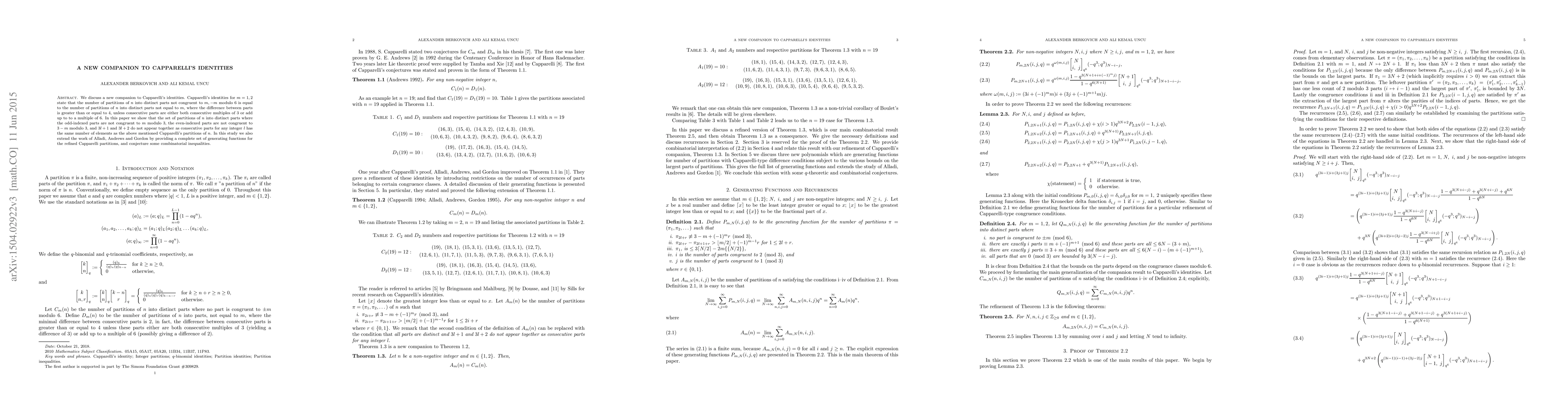 This paper introduces a new companion to Capparelli's identities, showing that partitions of n with specific congruence conditions on distinct parts match those described by Capparelli. It also extends previous work by providing generating functions and proposing combinatorial inequalities.