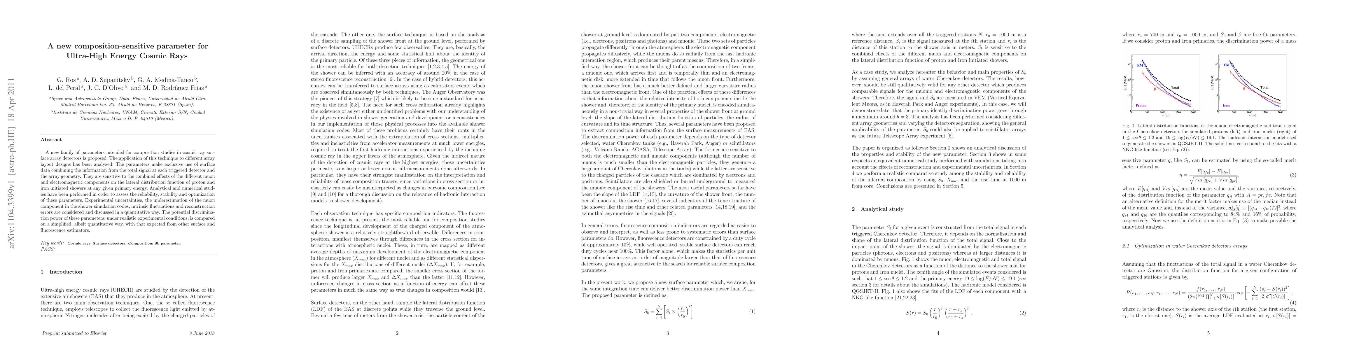 A new family of parameters intended for composition studies in cosmic ray surface array detectors is proposed. The application of this technique to different array layout designs has been analyzed. The parameters make exclusive use of surface data combining the information from the total signal at each triggered detector and the array geometry. They are sensitive to the combined effects of the different muon and electromagnetic components on the lateral distribution function of proton and iron initiated showers at any given primary energy. Analytical and numerical studies have been performed in order to assess the reliability, stability and optimization of these parameters. Experimental uncertainties, the underestimation of the muon component in the shower simulation codes, intrinsic fluctuations and reconstruction errors are considered and discussed in a quantitative way. The potential discrimination power of these parameters, under realistic experimental conditions, is compared on a simplified, albeit quantitative way, with that expected from other surface and fluorescence estimators.