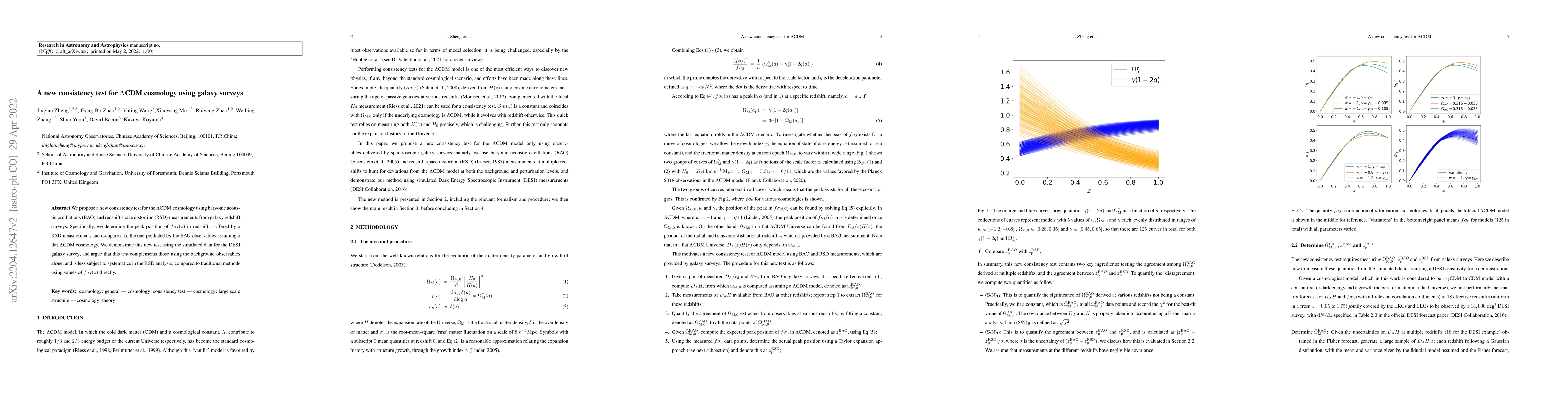 This paper introduces a novel consistency test for $\Lambda$CDM cosmology using galaxy surveys, comparing the peak position of $f\sigma_8(z)$ from redshift space distortion measurements to predictions from baryonic acoustic oscillations, demonstrating its effectiveness with DESI survey simulations. This test complements traditional methods by reducing systematic errors in redshift space distortion analysis.