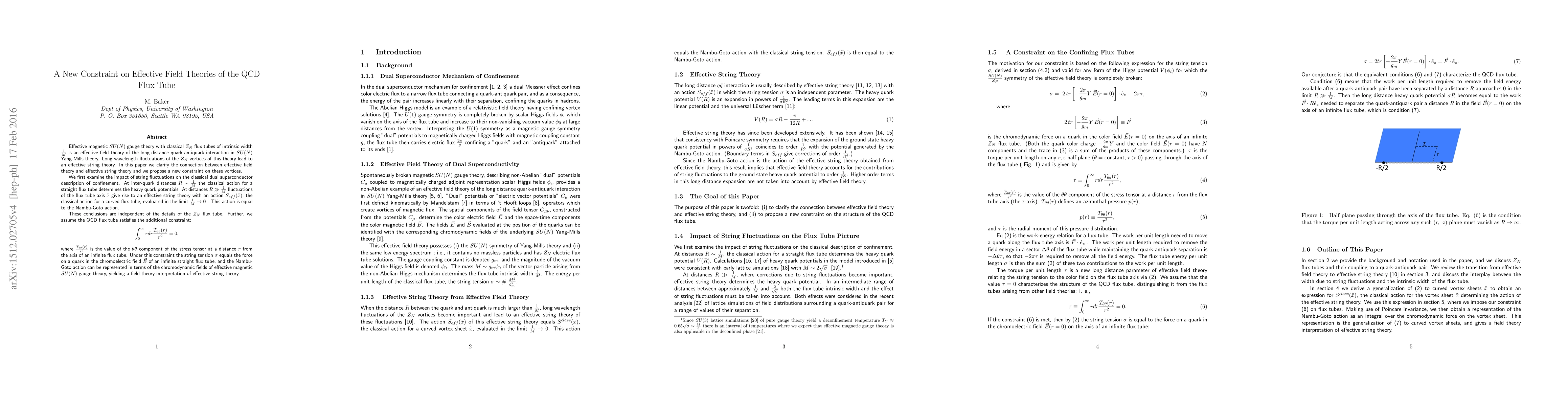 This paper establishes a new constraint on the effective field theory of QCD flux tubes, showing that the string tension equals the chromoelectric force on a quark. It connects effective field theory with effective string theory, proposing a constraint on $Z_N$ vortices that links the Nambu-Goto action to chromodynamic fields.