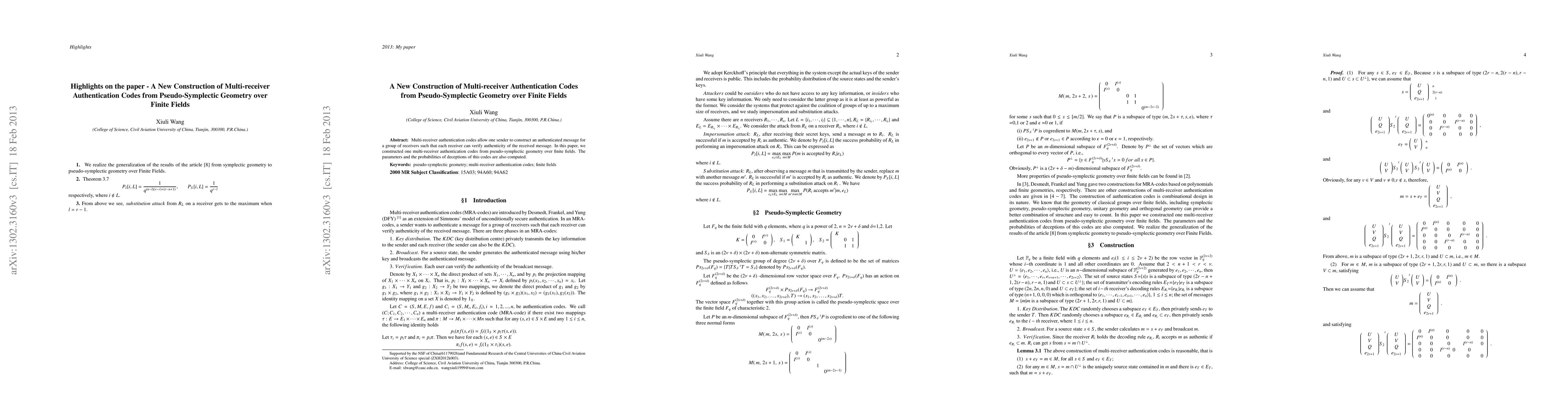This paper constructs multi-receiver authentication codes leveraging pseudo-symplectic geometry over finite fields, enabling a single sender to authenticate messages for multiple receivers. The study also computes the parameters and deception probabilities of the proposed codes.