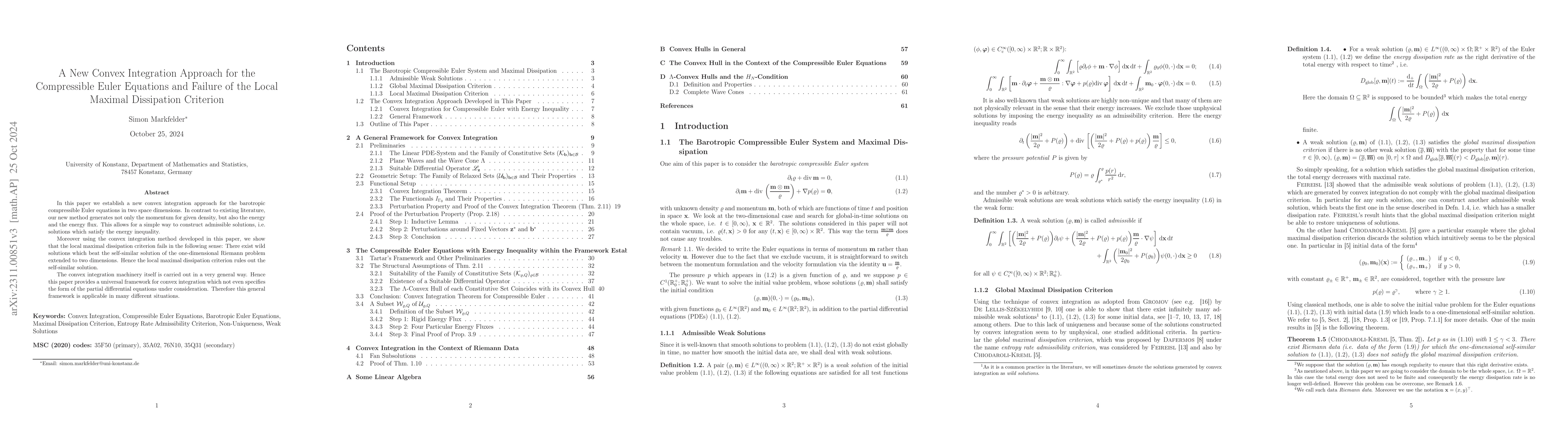 In this paper we establish a new convex integration approach for the barotropic compressible Euler equations in two space dimensions. In contrast to existing literature, our new method generates not only the momentum for given density, but also the energy and the energy flux. This allows for a simple way to construct admissible solutions, i.e. solutions which satisfy the energy inequality. Moreover using the convex integration method developed in this paper, we show that the local maximal dissipation criterion fails in the following sense: There exist wild solutions which beat the self-similar solution of the one-dimensional Riemann problem extended to two dimensions. Hence the local maximal dissipation criterion rules out the self-similar solution. The convex integration machinery itself is carried out in a very general way. Hence this paper provides a universal framework for convex integration which not even specifies the form of the partial differential equations under consideration. Therefore this general framework is applicable in many different situations.