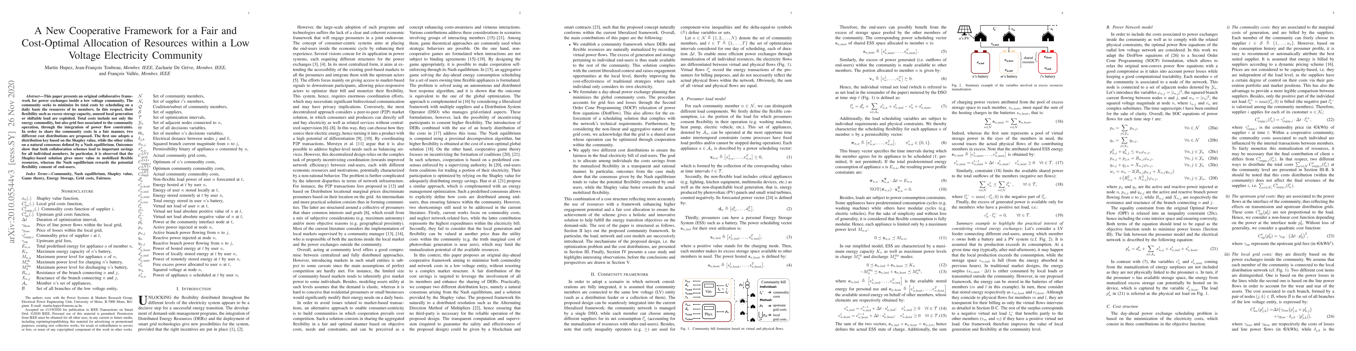 A new cooperative framework minimizes costs for a low-voltage electricity community by scheduling resources daily, exploiting flexibility like excess storage or shiftable load. Both frameworks show significant savings for members, with Shapley-based rewarding flexible resources and Nash equilibrium focusing on user consent.