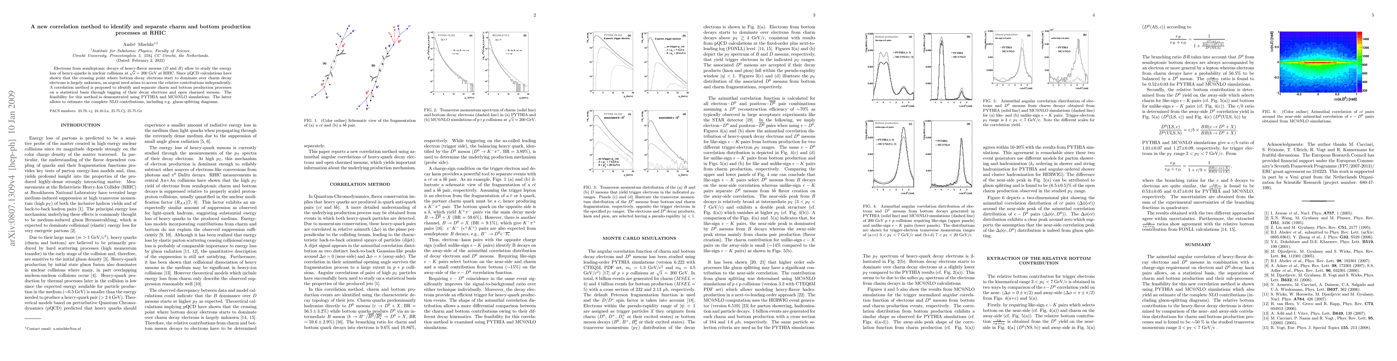 Electrons from semileptonic decays of heavy-flavor mesons (D and B) allow to study the energy loss of heavy-quarks in nuclear collisions at sqrt(s) = 200 GeV at RHIC. Since pQCD calculations have shown that the crossing point where bottom decay electrons start to dominate over charm decay electrons is largely unknown, an urgent need arises to access the relative contributions independently. A correlation method is proposed to identify and separate charm and bottom production processes on a statistical basis through tagging of their decay electrons and open charmed mesons. The feasibility for this method is demonstrated using PYTHIA and MC@NLO simulations. The latter allows to estimate the complete NLO contributions, including e.g. gluon-splitting diagrams.
