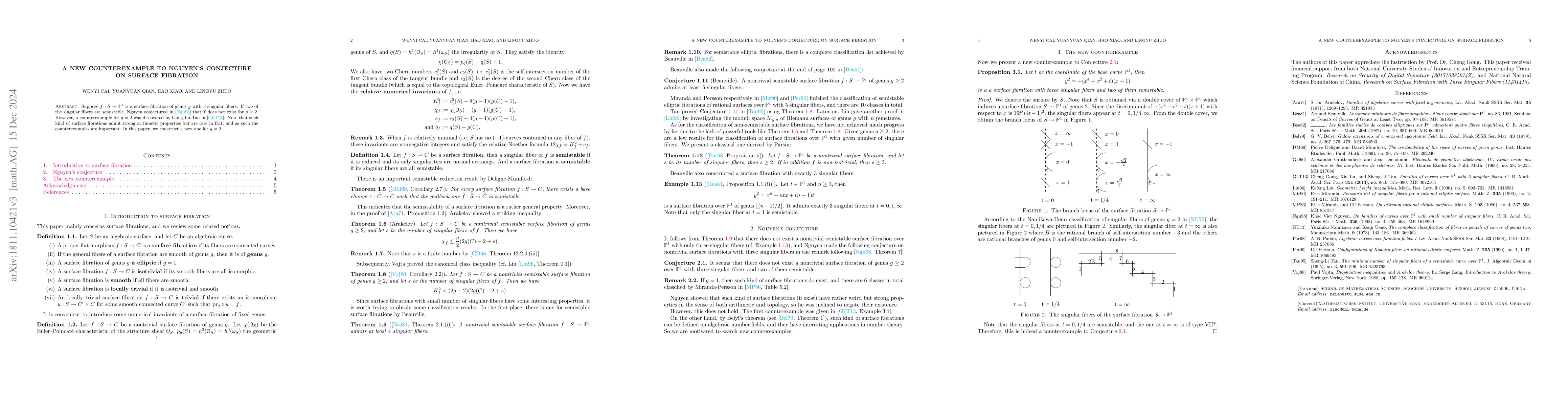 Researchers have found a new counterexample to Nguyen's Conjecture on Surface Fibration for genus g=2, contradicting the previous finding in 2013. The discovery shows that such fibrations can exist with strong arithmetic properties.