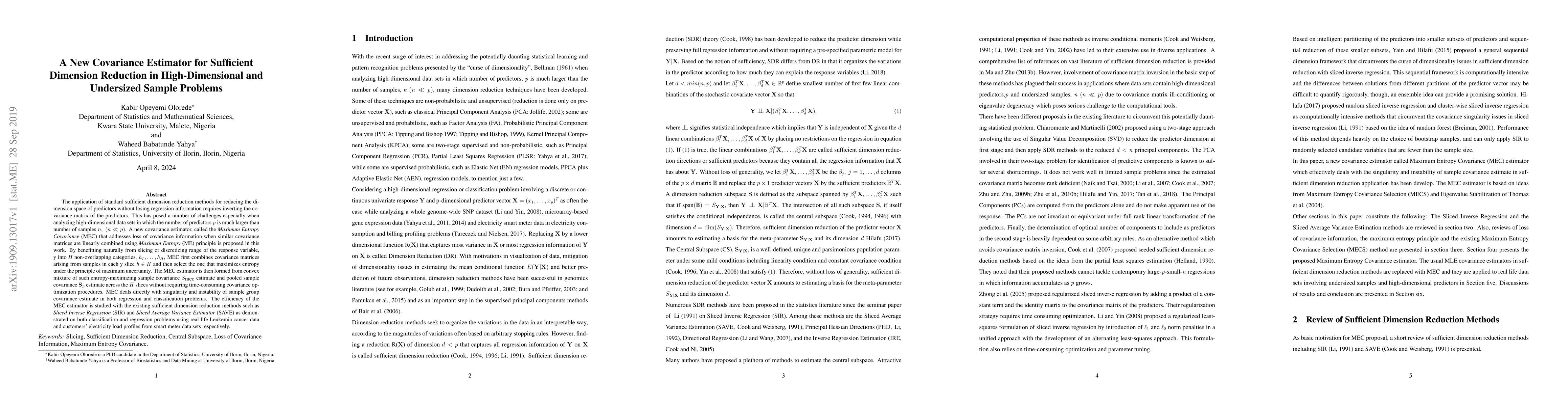 A new covariance estimator called Maximum Entropy Covariance (MEC) is proposed to address challenges in high-dimensional data analysis, offering a more efficient approach to sufficient dimension reduction without losing regression information.