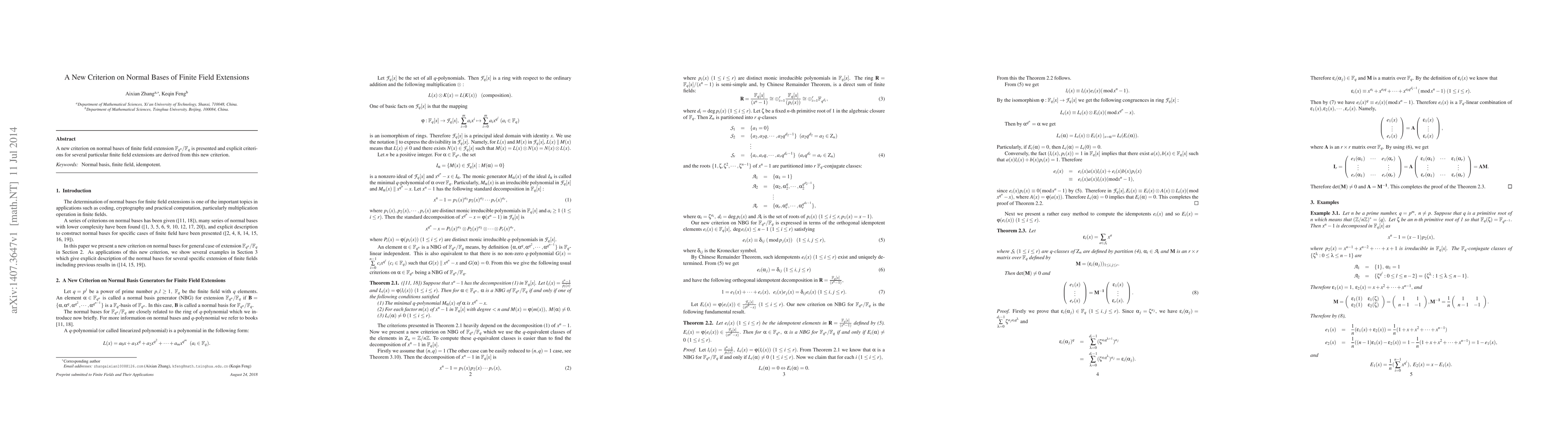 A new criterion on normal bases of finite field extension $\mathbb{F}_{q^n} / \mathbb{F}_{q}$ is presented and explicit criterions for several particular finite field extensions are derived from this new criterion.