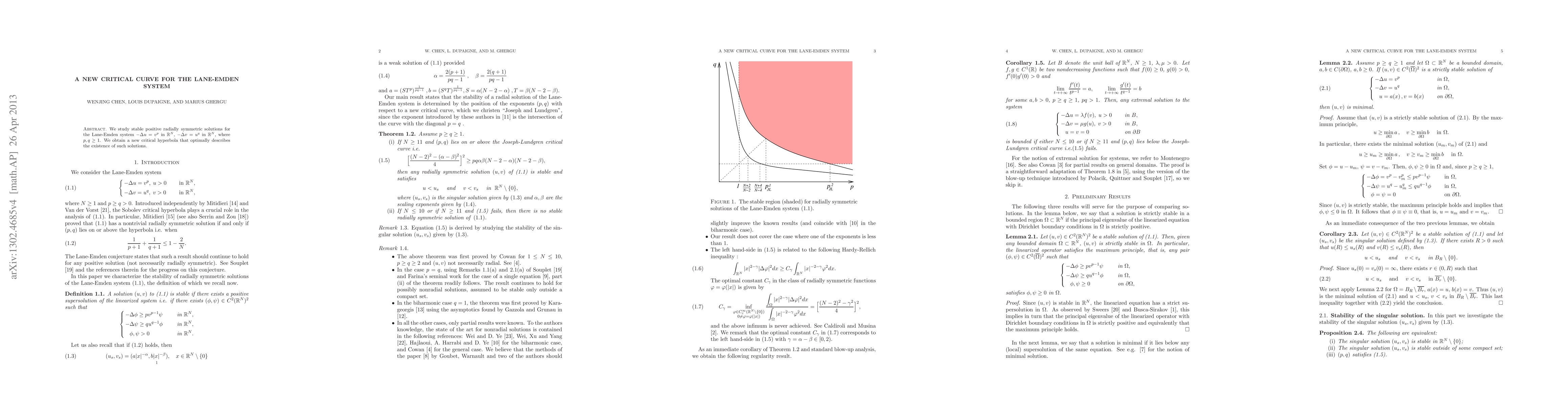 This paper introduces a new critical curve for finding stable positive radially symmetric solutions to a system of nonlinear equations, providing a more accurate description of solution existence.