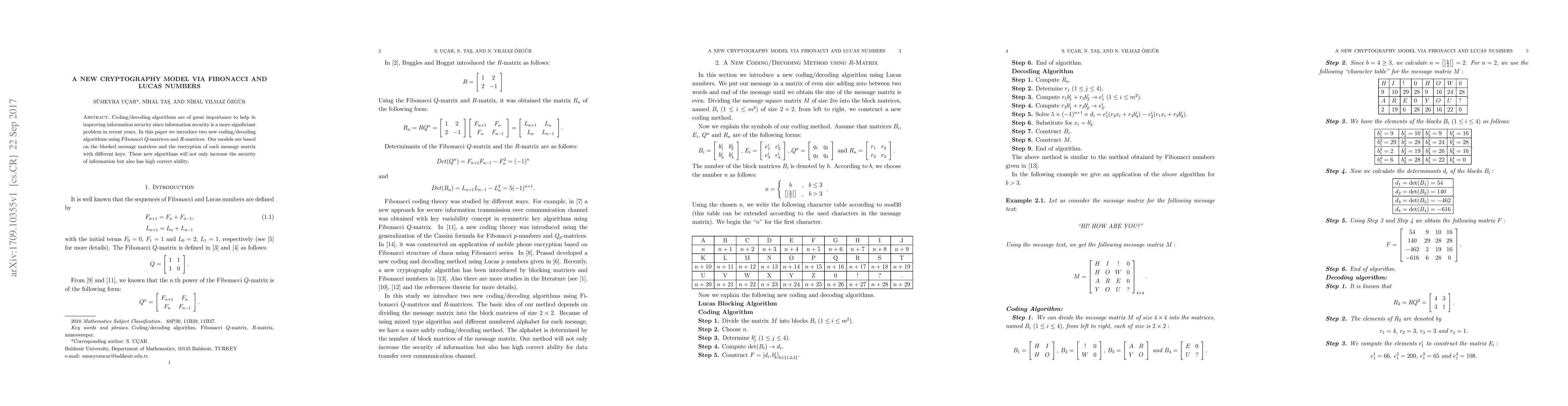 This paper introduces new coding/decoding algorithms using Fibonacci and Lucas numbers to improve information security, offering increased security and high correct ability.