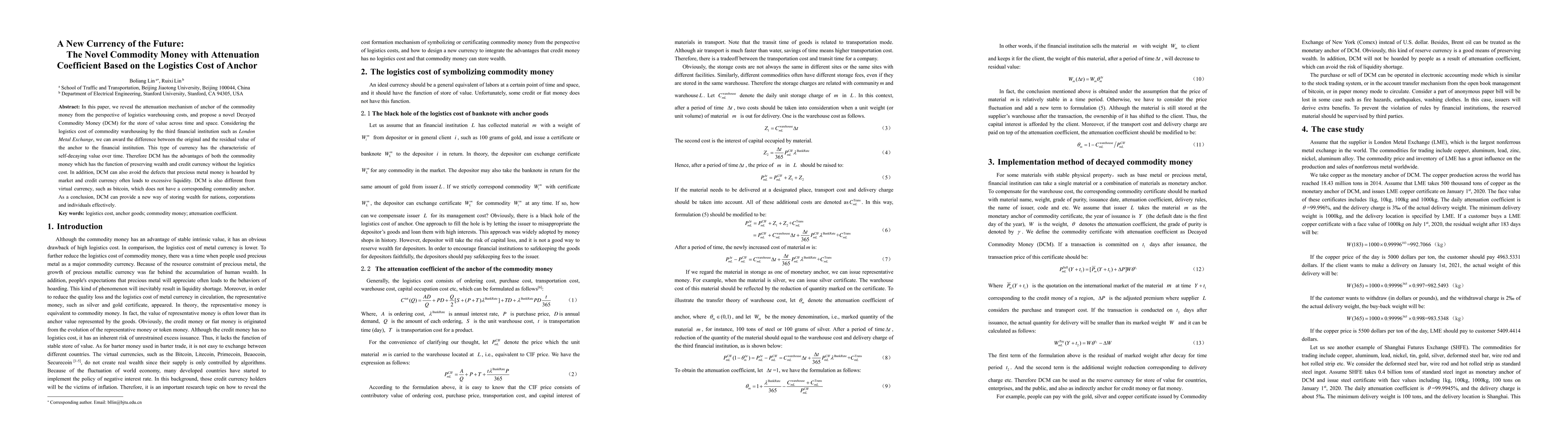 In this paper, we reveal the attenuation mechanism of anchor of the commodity money from the perspective of logistics warehousing costs, and propose a novel Decayed Commodity Money (DCM) for the store of value across time and space. Considering the logistics cost of commodity warehousing by the third financial institution such as London Metal Exchange, we can award the difference between the original and the residual value of the anchor to the financial institution. This type of currency has the characteristic of self-decaying value over time. Therefore DCM has the advantages of both the commodity money which has the function of preserving wealth and credit currency without the logistics cost. In addition, DCM can also avoid the defects that precious metal money is hoarded by market and credit currency often leads to excessive liquidity. DCM is also different from virtual currency, such as bitcoin, which does not have a corresponding commodity anchor. As a conclusion, DCM can provide a new way of storing wealth for nations, corporations and individuals effectively.