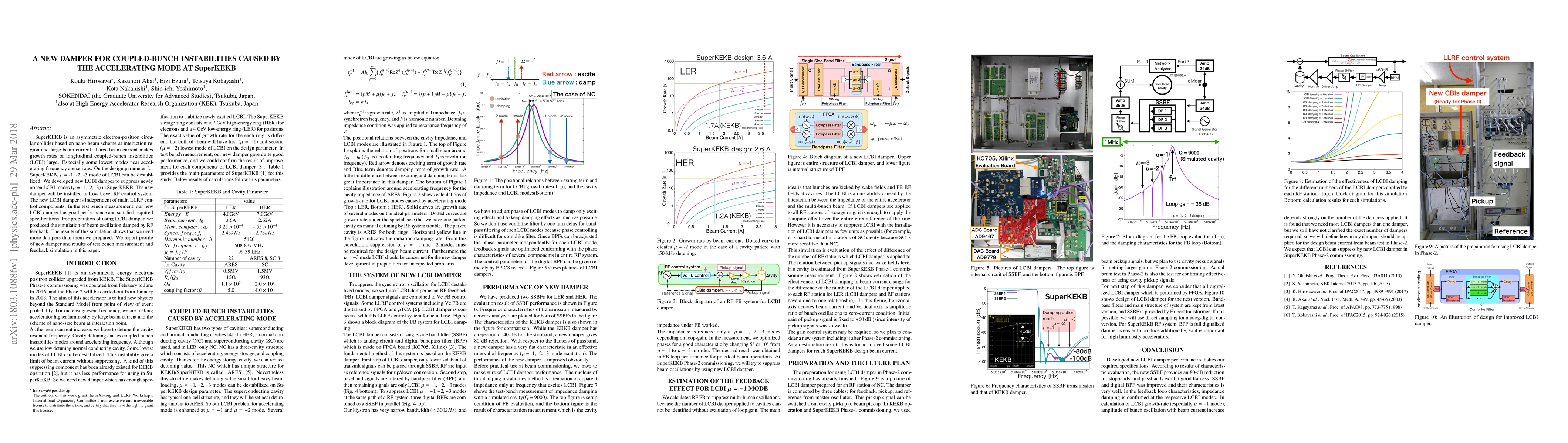 SuperKEKB is an asymmetric electron-positron circular collider based on nano-beam scheme at interaction region and large beam current. Large beam current makes growth rates of longitudinal coupled-bunch instabilities (LCBI) large. Especially some lowest modes near accelerating frequency are serious. On the design parameter for SuperKEKB, $\mu$ = -1, -2, -3 mode of LCBI can be destabilized. We developed new LCBI damper to suppress newly arisen LCBI modes ($\mu$ = -1, -2, -3) in SuperKEKB. The new damper will be installed in Low Level RF control system. The new LCBI damper is independent of main LLRF control components. In the test bench measurement, our new LCBI damper has good performance and satisfied required specifications. For preparation of using LCBI damper, we produced the simulation of beam oscillation damped by RF feedback. The results of this simulation shows that we need more dampers than them we prepared. We report profile of new damper and results of test bench measurement and feedback simulation in this paper.