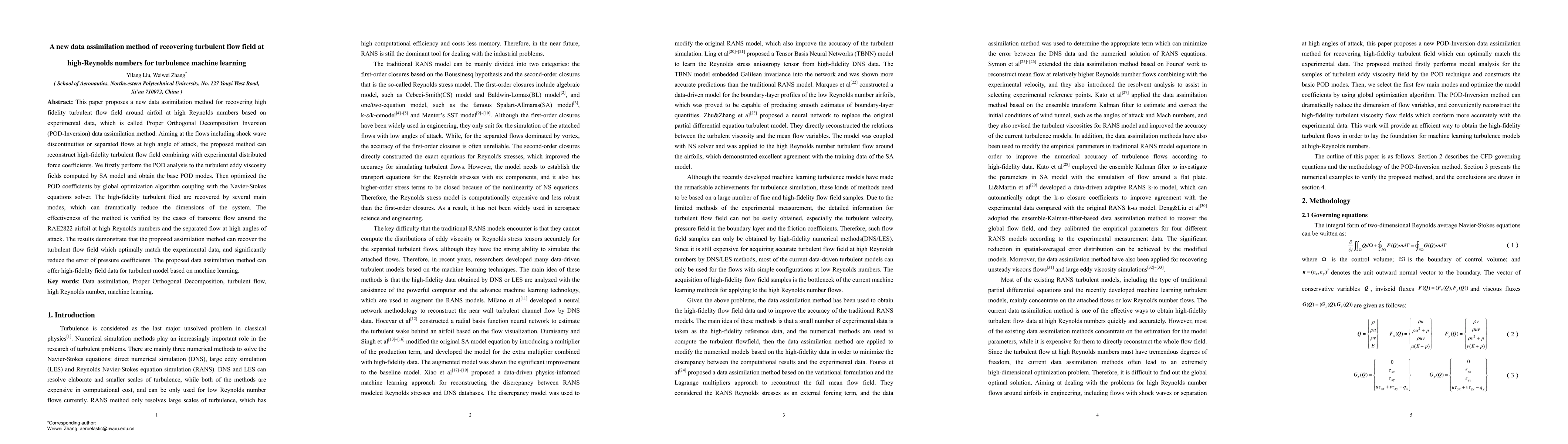 This paper introduces a new data assimilation method called Proper Orthogonal Decomposition Inversion (POD-Inversion) to recover high-fidelity turbulent flow fields at high Reynolds numbers, validated through transonic flow and separated flow cases around an airfoil. The method effectively reduces dimensionality and matches experimental data, offering valuable data for turbulence machine learning models.