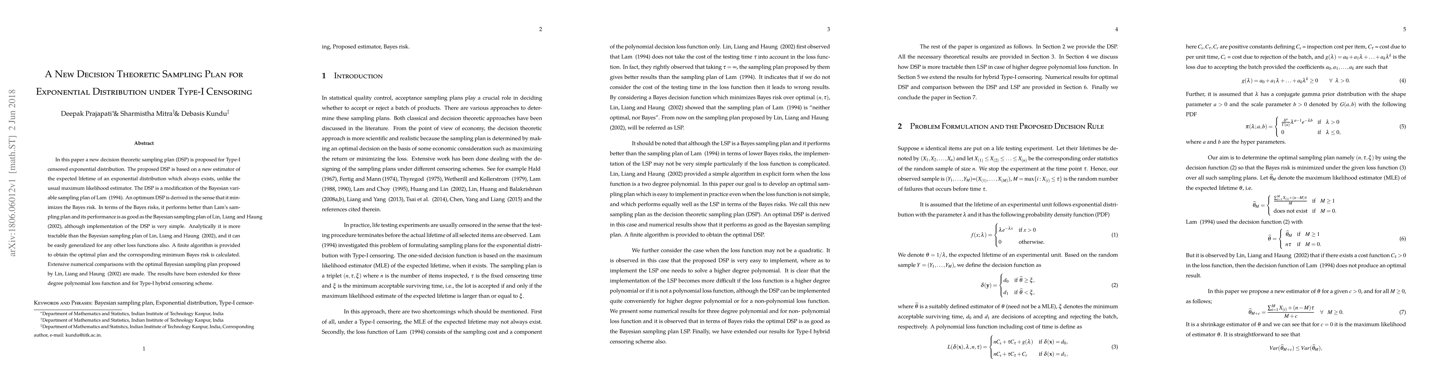 A new decision theoretic sampling plan is proposed for Type-I censored exponential distributions to minimize Bayes risk, outperforming existing plans while maintaining simplicity of implementation.