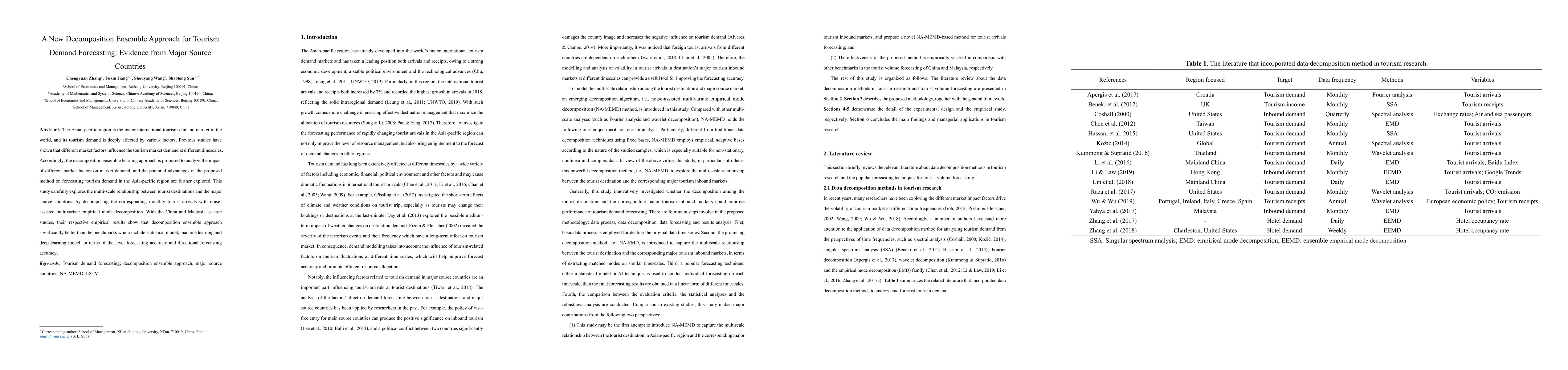 This paper proposes a decomposition ensemble learning approach to analyze and forecast tourism demand in the Asia-Pacific region, demonstrating its effectiveness through case studies of China and Malaysia. The method outperforms traditional statistical, machine learning, and deep learning models in both forecasting accuracy and directionality.