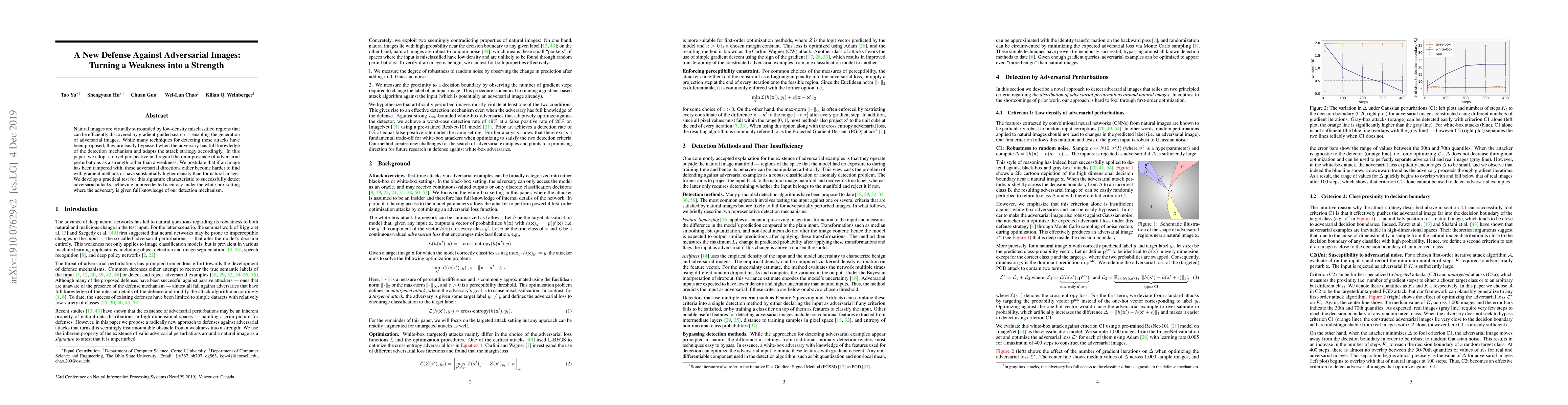 Natural images are virtually surrounded by low-density misclassified regions that can be efficiently discovered by gradient-guided search --- enabling the generation of adversarial images. While many techniques for detecting these attacks have been proposed, they are easily bypassed when the adversary has full knowledge of the detection mechanism and adapts the attack strategy accordingly. In this paper, we adopt a novel perspective and regard the omnipresence of adversarial perturbations as a strength rather than a weakness. We postulate that if an image has been tampered with, these adversarial directions either become harder to find with gradient methods or have substantially higher density than for natural images. We develop a practical test for this signature characteristic to successfully detect adversarial attacks, achieving unprecedented accuracy under the white-box setting where the adversary is given full knowledge of our detection mechanism.