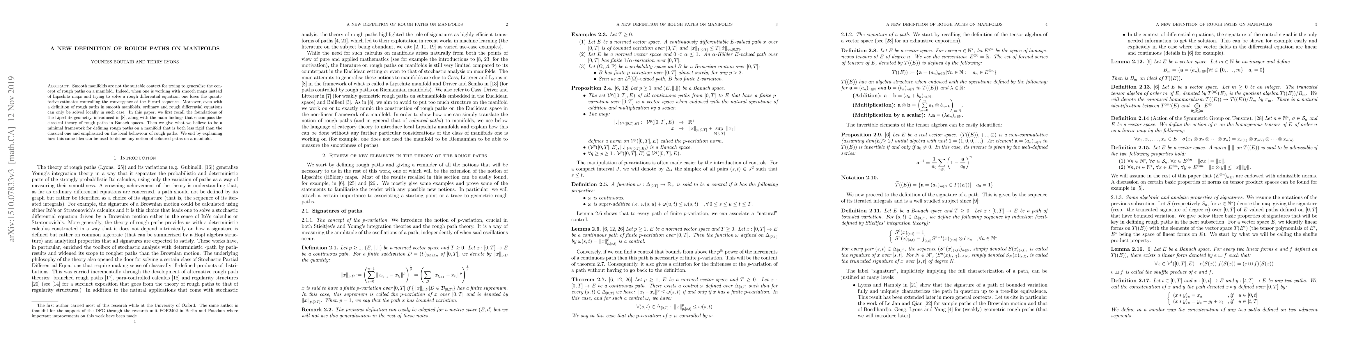 Smooth manifolds are not the suitable context for trying to generalize the concept of rough paths on a manifold. Indeed, when one is working with smooth maps instead of Lipschitz maps and trying to solve a rough differential equation, one loses the quantitative estimates controlling the convergence of the Picard sequence. Moreover, even with a definition of rough paths in smooth manifolds, ordinary and rough differential equations can only be solved locally in such case. In this paper, we first recall the foundations of the Lipschitz geometry, introduced in "Rough Paths on Manifolds" (Cass, T., Litterer, C. & Lyons, T.), along with the main findings that encompass the classical theory of rough paths in Banach spaces. Then we give what we believe to be a minimal framework for defining rough paths on a manifold that is both less rigid than the classical one and emphasized on the local behaviour of rough paths. We end by explaining how this same idea can be used to define any notion of coloured paths on a manifold.