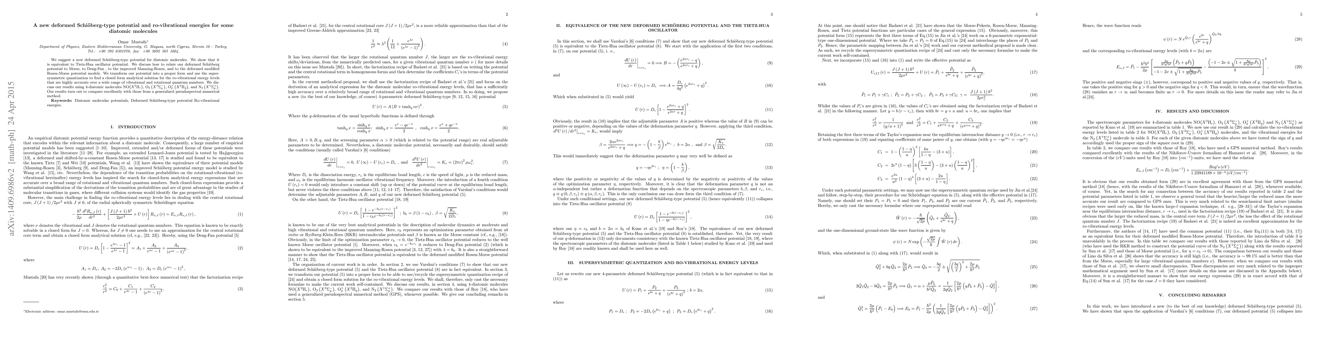 Researchers propose a new deformed Schi"oberg potential for diatomic molecules, which they show is equivalent to the Tietz-Hua oscillator potential, allowing for accurate analytical solutions to ro-vibrational energy levels.
