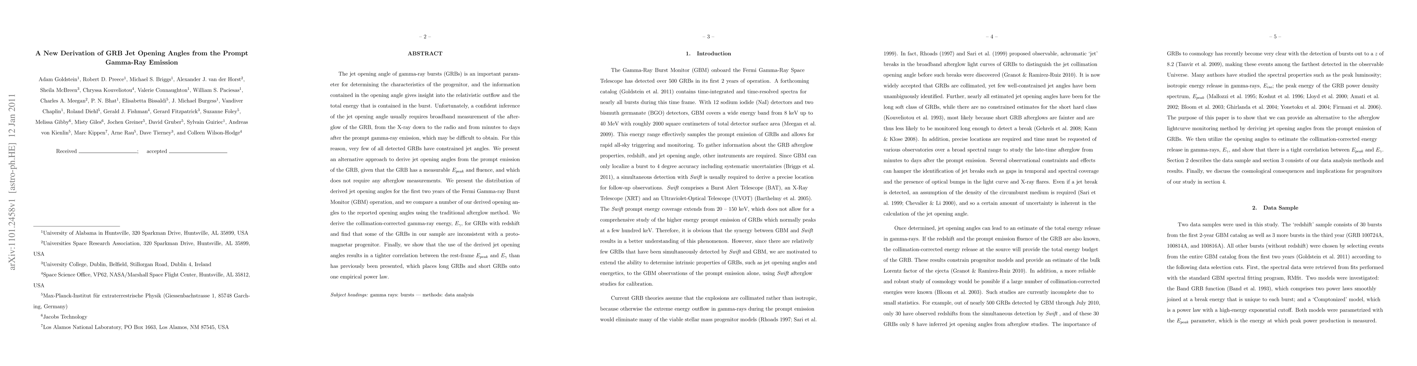 This paper presents a novel method to derive gamma-ray burst (GRB) jet opening angles from the prompt emission, without requiring afterglow measurements. The authors analyze the first two years of Fermi GBM data and find tighter correlations between Epeak and gamma-ray energy, suggesting a unified empirical power law for both long and short GRBs.