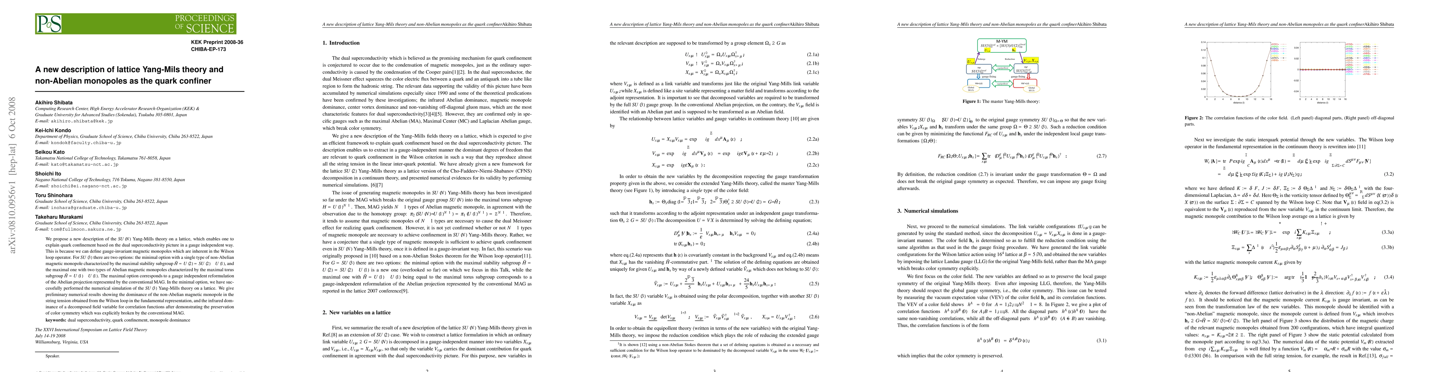 We propose a new description of the SU(N) Yang-Mills theory on a lattice, which enables one to explain quark confinement based on the dual superconductivity picture in a gauge independent way. This is because we can define gauge-invariant magnetic monopoles which are inherent in the Wilson loop operator. For SU(3) there are two options: the minimal option with a single type of non-Abelian magnetic monopole characterized by the maximal stability subgroup $\tilde{H}=U(2)=SU(2)\times U(1)$, and the maximal one with two types of Abelian magnetic monopoles characterized by the maximal torus subgroup $\tilde{H}=U(1)\times U(1)$. The maximal option corresponds to a gauge independent reformulation of the Abelian projection represented by the conventional MAG. In the minimal option, we have successfully performed the numerical simulation of the SU(3) Yang-Mills theory on a lattice. We give preliminary numerical results showing the dominance of the non-Abelian magnetic monopole in the string tension obtained from the Wilson loop in the fundamental representation, and the infrared dominance of a decomposed field variable for correlation functions after demonstrating the preservation of color symmetry which was explicitly broken by the conventional MAG.