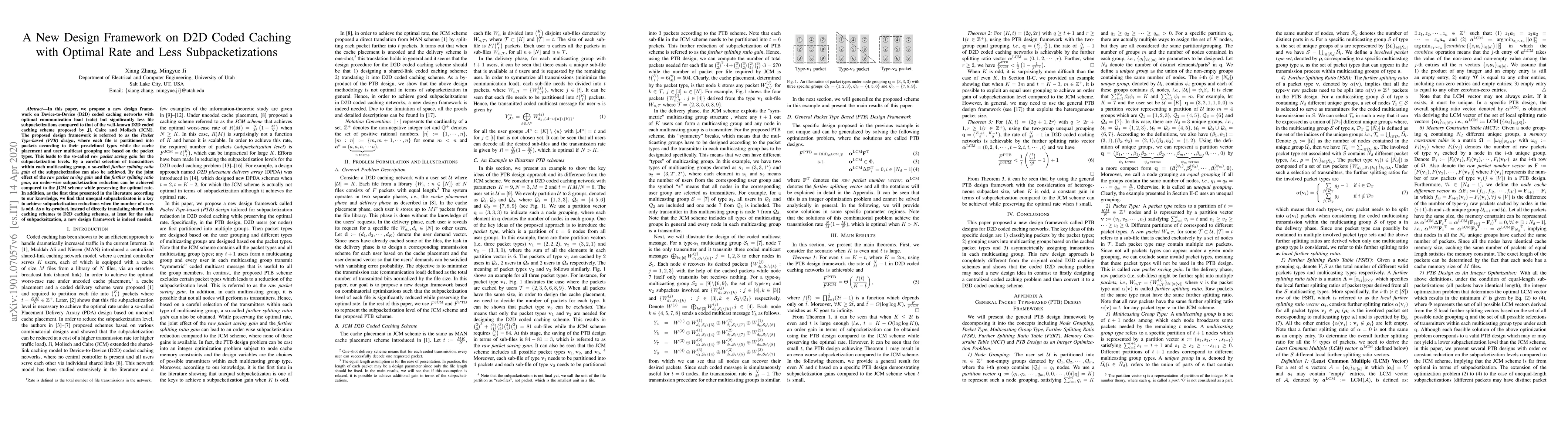 Researchers propose a new design framework for device-to-device caching that reduces subpacketization without sacrificing optimal rate, offering a more efficient approach to data transmission.