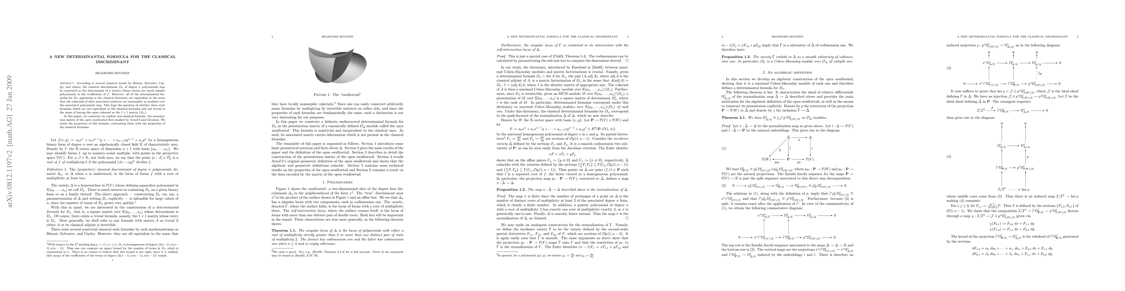 According to several classical results by Bezout, Sylvester, Cayley, and others, the classical discriminant D_n of degree n polynomials may be expressed as the determinant of a matrix whose entries are much simpler polynomials in the coefficients of f. However, all of the determinantal formulae for D_n appearing in the classical literature are equivalent in the sense that the cokernels of their associated matrices are isomorphic as modules over the associated polynomial ring. This begs the question of whether there exist formulae which are not equivalent to the classical formulae and not trivial in the sense of having the same cokernel as the 1 x 1 matrix (D_n). In this paper, we construct an explicit non-classical formula: the presentation matrix of the open swallowtail first studied by Arnol'd and Givental. We study the properties of this formula, contrasting them with the properties of the classical formulae.